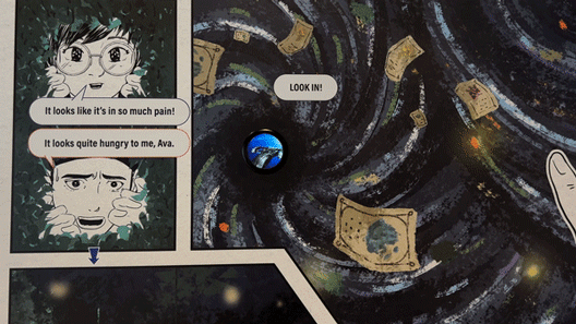 专为青少年设计的超大漫画书将读者带入一个跨越不同流派的故事中。互动漫画面板和全息窥视孔让读者成为故事的一部分。
