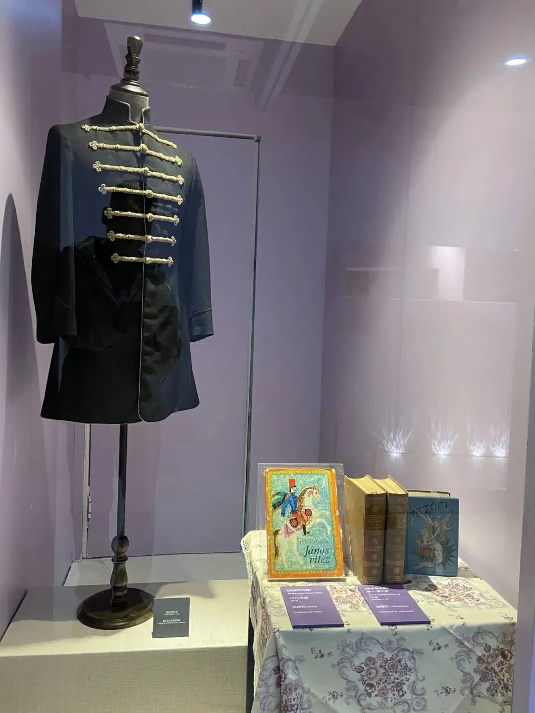 现场展出的裴多菲作品发行本和他穿过的大衣