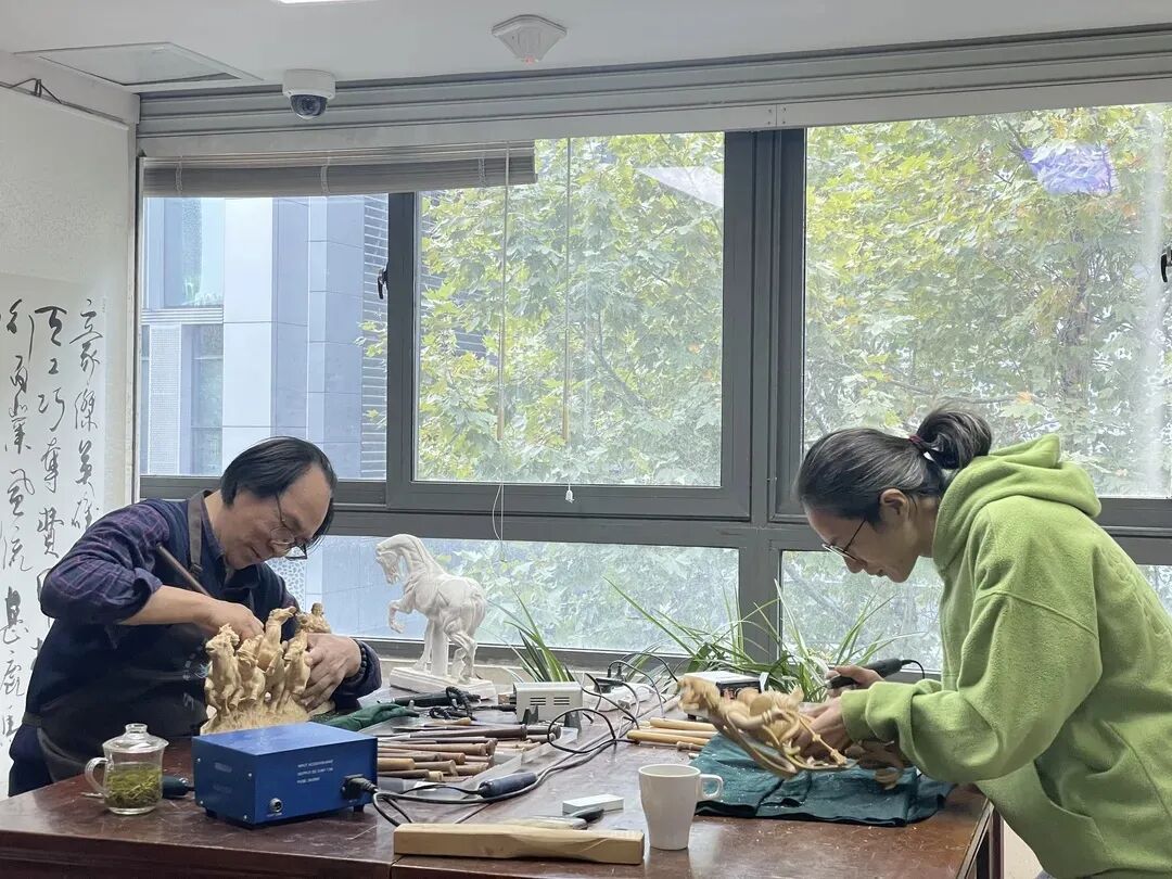 工美馆最具特色的“大师工作室”包含西湖绸伞制作、油纸伞制作、手工制扇、杭州手绣、杭州机绣、萧山花边等二十余项非遗技艺,入驻国家级、省市级工艺美术大师及传统手工艺传承人三十余人,这些大师不仅定期在馆内创作,还会现场演示技艺,如刺绣的“双面异色绣”、木雕的“镂空雕”等,让观众亲眼见证非遗的精湛工艺,为观众提供近距离接触、观赏非遗技艺、体验传统手工艺制作的机会。
