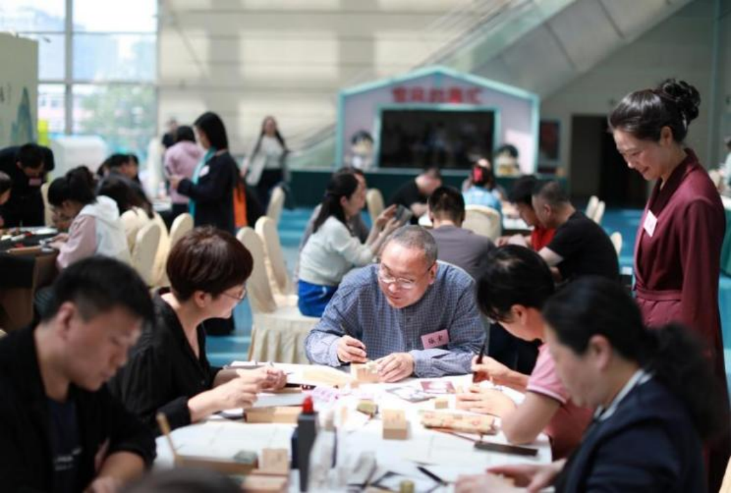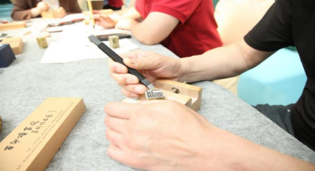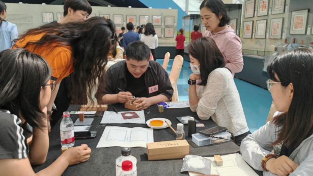 展览还组织了别开生面的篆刻艺术体验活动,以小组指导的方式带领观众现场体验篆刻艺术,感受金石与书法艺术碰撞结合的独特魅力。一位初试篆刻的观众表示:“这是一种与众不同的体验,是刀跟石头之间碰撞出来的,是平时纸墨营造不出的感受,很酷!”