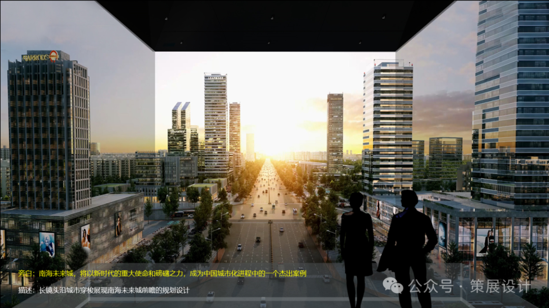 这里将成为一个环湖未来的城市,一个绿色生态的城市,一个理念领先的城市,一个产城融合的城市。整个南海未来城由四大元素组成:“一个核心区,三条绿色廊道,四个特色组团,一条环状水网”。