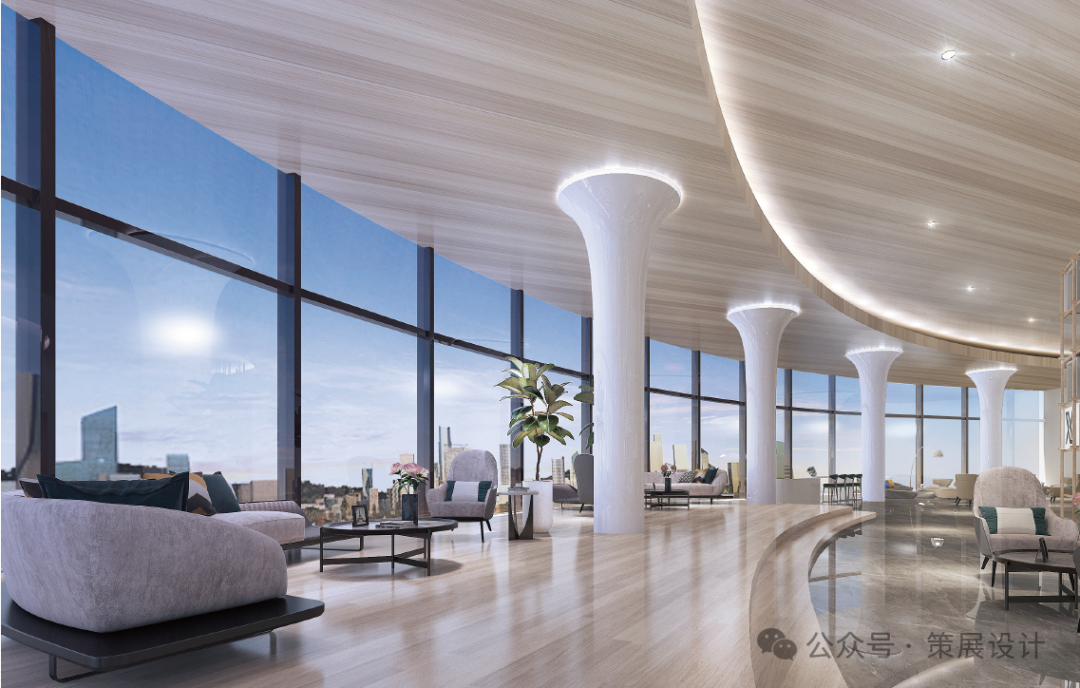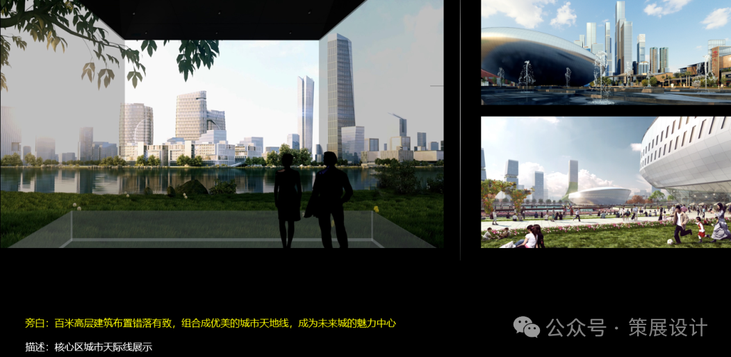 岛屿中,环湖百米高层建筑错落有致,组合成优美的城市天地线,成为未来城的魅力中心。