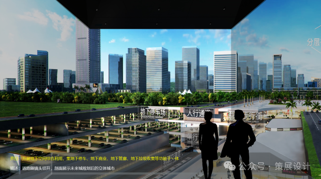 未来城融入当今城市建设的最新理念和最新技术,试点示范未来建筑、第四代建筑、模块化建筑,应用无人车、无人艇、CIM、窄带物联等新技术。综合利用地下空间,核心区集地下停车、地下商业、地下管廊、地下垃圾收集等功能于一体,地下交通 “五环相连、环环相通”,构建绿色、低碳、安全、高效的立体城市、智慧城市、海绵城市。