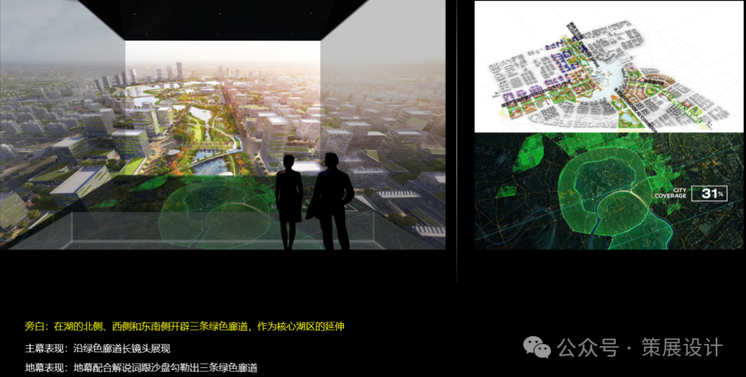 在核心区打造一个半月形的湖区,以湖为中心,若干城市综合体环湖而立,作为整个区域门户形象展示面。花瓣型的岛屿延伸湖面,不同功能的建筑散落在