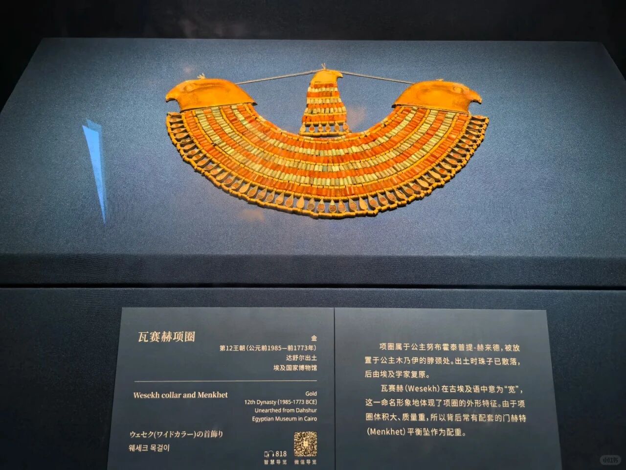 “金字塔之巅:古埃及文明大展”于2024年7月19日正式向公众开放,展期将近13个月,延续至2025年8月17日。这一展览由上海博物馆、埃及最高文物委员会联合举办,是上海博物馆有史以来最大规模的特展,也是有史以来全球最大规模、亚洲最高等级的埃及文物出境展。特展汇集了 788件 古埃及文明不同时期的珍贵文物,包括图坦卡蒙、阿蒙涅姆赫特三世以及拉美西斯二世等法老雕像,成套木乃伊棺,女王金饰以及萨卡拉地区新发现的彩绘木棺、动物木乃伊和雕像等重磅展品。这些文物中最重的一件重达3吨,最高的一件高达2.4米,且超过95%的文物为首次来到亚洲。