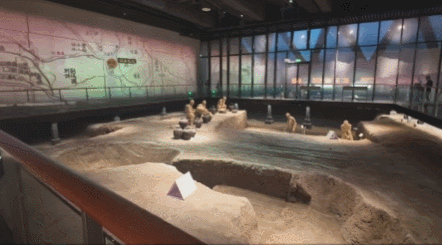 在 遗址展厅 ,观众可以直观考古现场,看到汉代的水井和陶窑,还可以通过信息化技术,了解汉代居民的生产和生活,为以后持续开展考古发掘预留了空间,使遗址展厅成为观众可参与的动态展示空间。