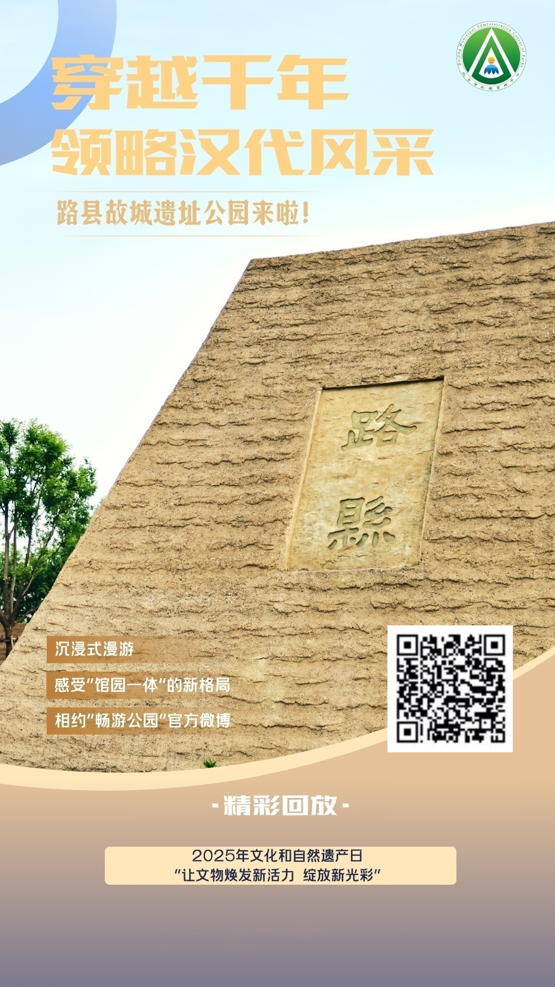 路县故城遗址公园 由路县故城遗址博物馆和南北两个园区组成, 是 北京 首个以“馆园一体”形式 运行的考古遗址公园 ,是集文物保护、生态涵养、文化体验于一体的 城市新空间 。