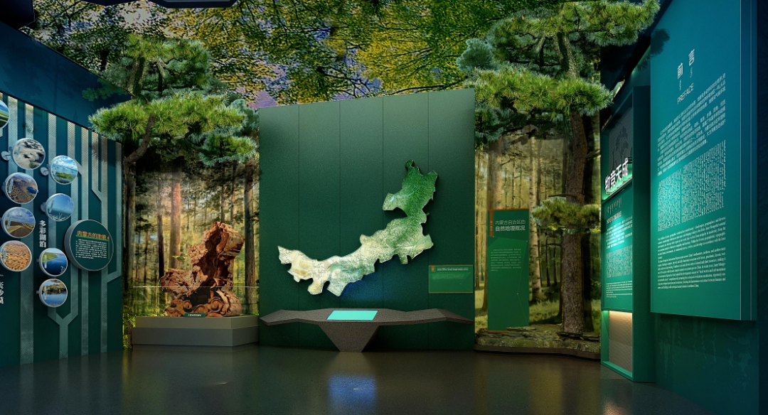 “亮丽内蒙古”展厅 ,以动态的手法和新颖的材料,全新演绎了内蒙古的生态之美。进入序厅,你就能沉浸式感受内蒙古的四季画卷;“物竞天成”部分总体讲述内蒙古的自然地理概况和动、植物资源;“林海奇观”“草原千姿”“水域万象”“大漠韵律”四大部分,带你了解内蒙古的森林、草原、湿地、荒漠等典型生态环境。