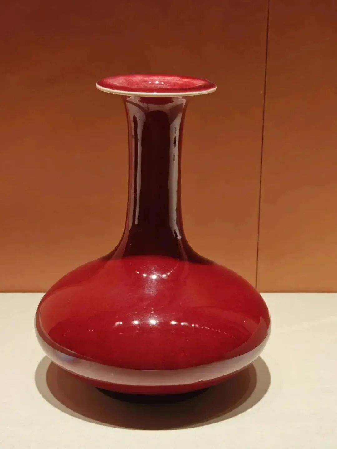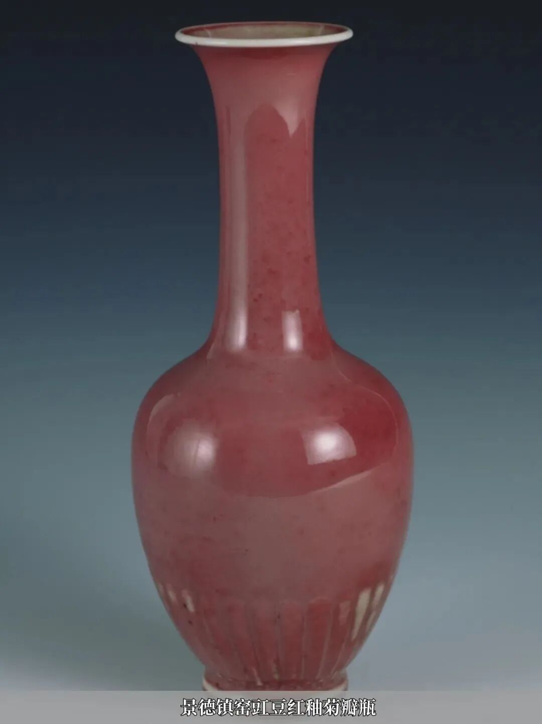 红釉·浴火丹霞”里,豇豆红釉菊瓣瓶、红釉盘等,展示了红釉瓷器的热烈奔放。