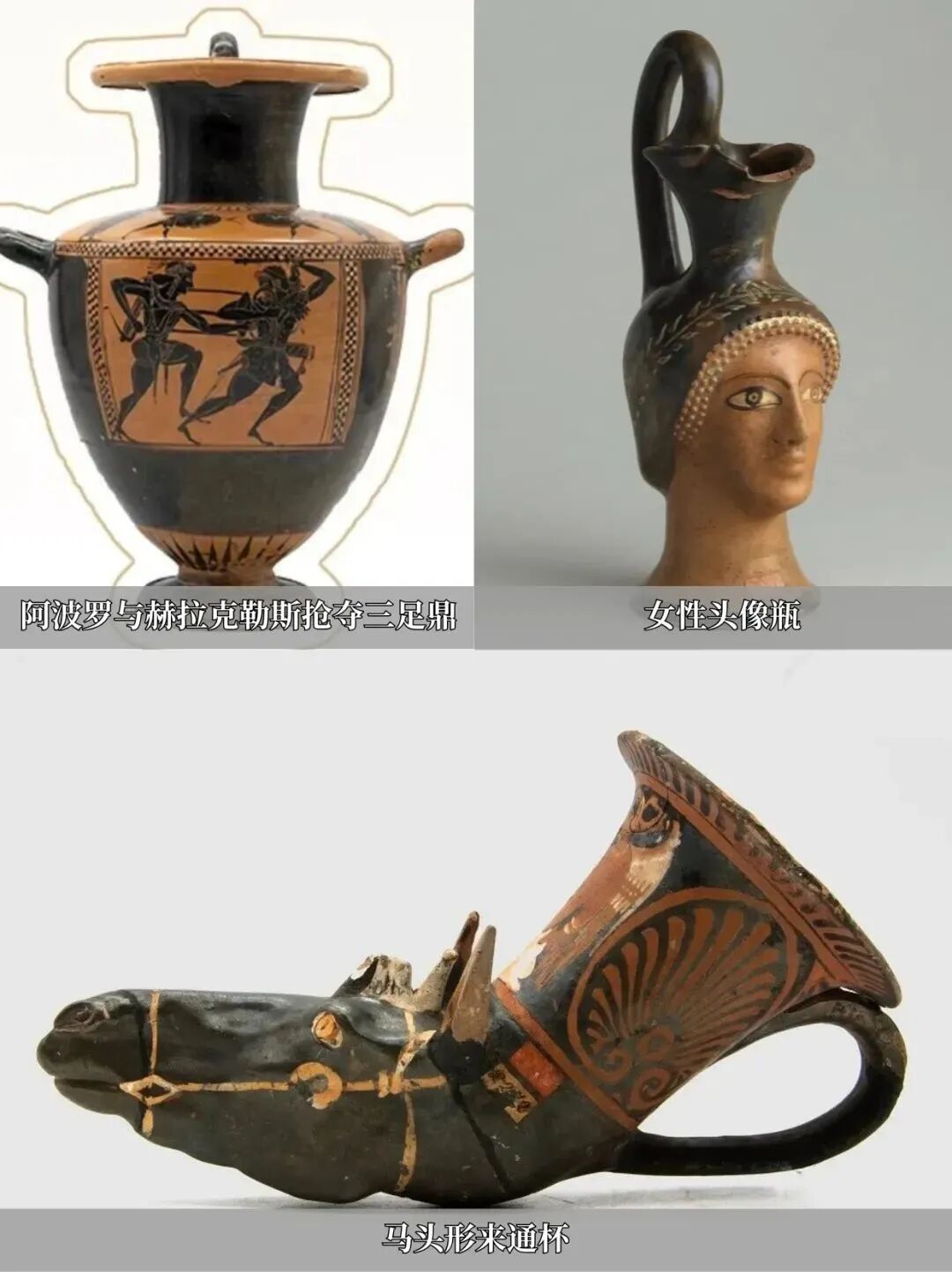 “城邦文明”里,马头形来通杯、女性头像瓶等文物,反映了古希腊城邦的生活风貌;