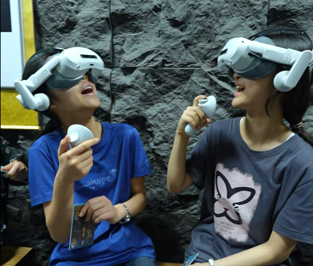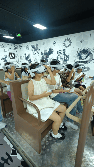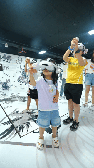 在临境山海经VR全感剧场中,孩子们佩戴VR设备体验时的专注神情,成为最动人的风景——他们或伸手触碰翩跹的凤凰,或为突然浮现的相柳惊呼,笑声与惊叹声交织成最纯粹的文化共鸣。这种沉浸式的快乐,恰是万像倡导的「无界学习」理念:当知识以震撼感官的方式呈现,探索的种子便悄然扎根。父母们见证着孩子与上古神兽的互动,也在科技赋能中重识华夏文明的深邃魅力。