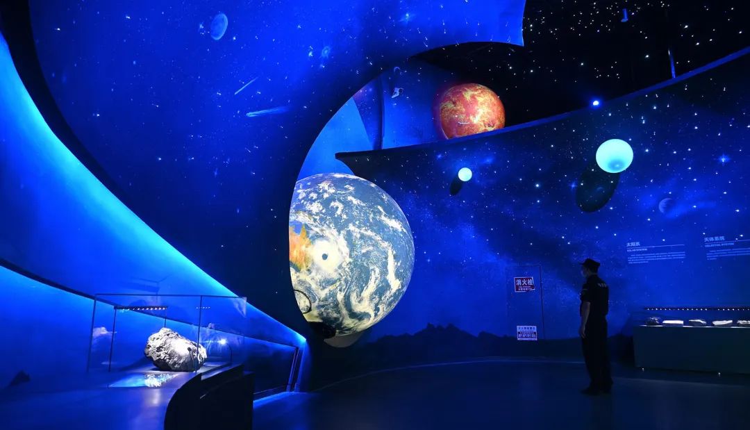 地质环境厅 在浩瀚的成都自然博物馆(成都理工大学博物馆)一楼,矗立着一个占地约962平方米、层高7米的宏伟殿堂——地质环境厅。这里,是探索宇宙奥秘与地球沧桑巨变的奇幻之旅的起点。 踏入这片神圣的地质殿堂,您首先会被一幅模拟太阳系的壮丽景象所震撼。“地球”在深邃蔚蓝的夜空下缓缓旋转,如同一位优雅的舞者,引领着您步入这充满神秘与魅力的地质世界。