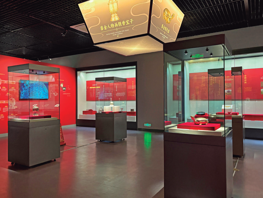 在前述背景下,临时展览就成为丰富展览内容的重要手段,创新和引进具有异质性、多时段特点的临时展览成为关键考量因素。首先,法门寺唐塔地宫出土的唐代文物引人注目,与基本陈列相较呈现出异质特征。这批文物包括秘色瓷、金银器、琉璃器等;其中的许多金银器为唐懿宗、唐僖宗父子所供奉,为唐代宫廷内库作坊文思院打造的御用品,反映当时社会的工艺水平和审美趣味。其次,展览中的佛教主题与荆州地区古代城市发展有历史共鸣与关联,荆州地区在六朝和隋唐时期亦为佛教的重要传播之地与学术重镇,与长安皇室有着密切联系,也与法门寺文物的历史背景相互映衬。再次,荆州博物馆的“开元观历史文化陈列”,其址据方志记载建于唐代,遗址发掘报告显示出土了宋代至明清时期以来的遗物,此基本陈列重在展示部分唐代文物、道教文物,也与临时展览区紧紧衔接,可形成中古时期佛道文化、文物的映衬效果。