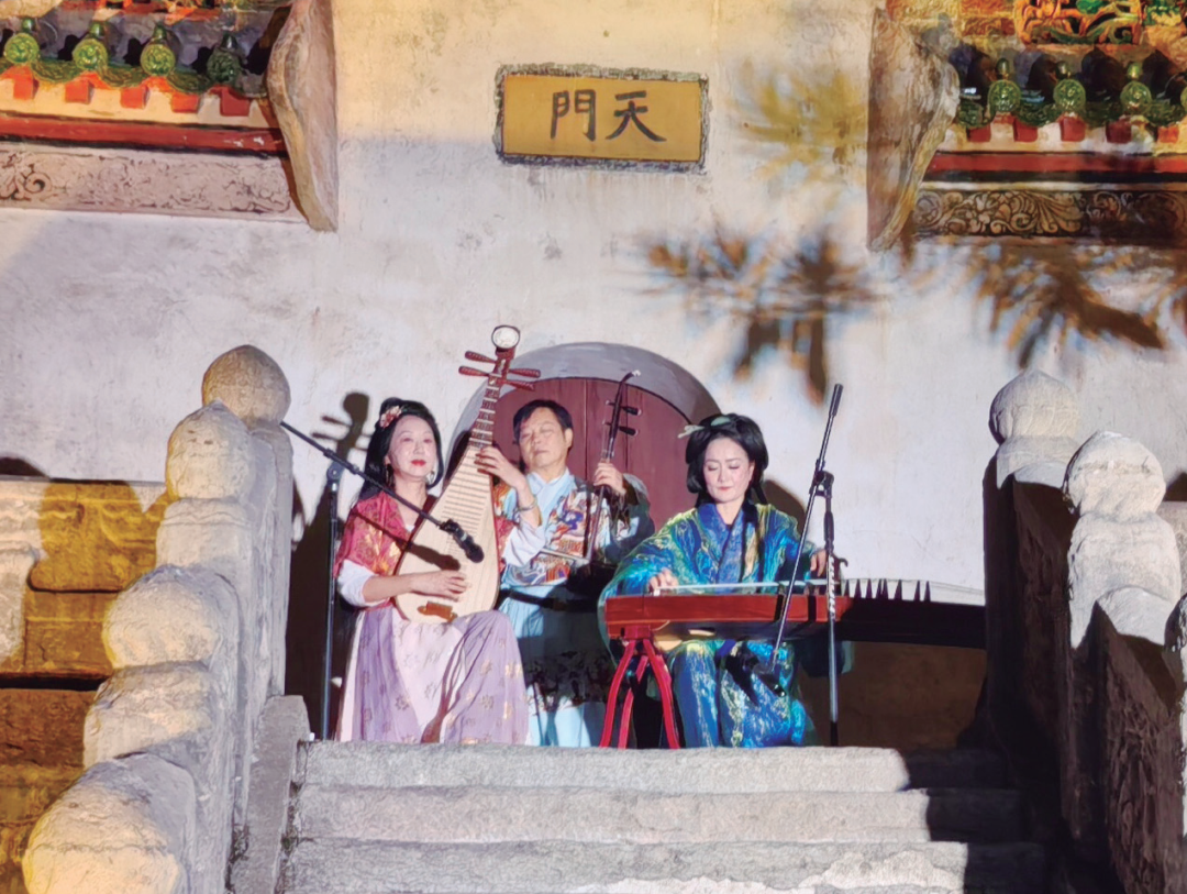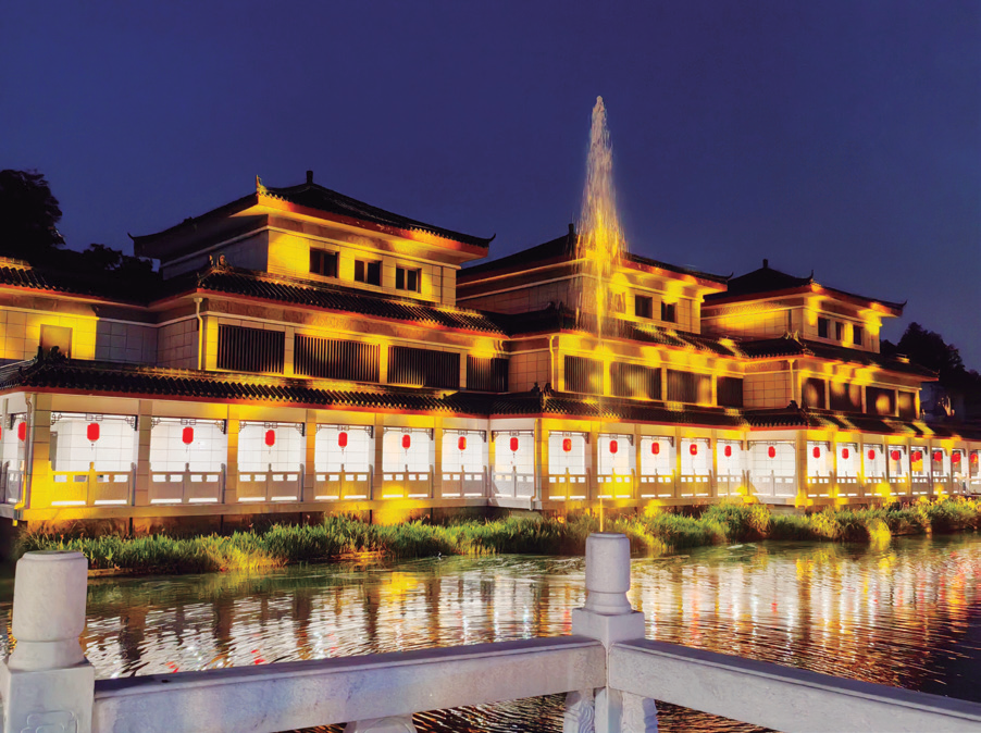 此外,荆州博物馆充分利用了现有“开元观历史文化陈列”和“盛世遗珠 法门珍宝——唐代精品文物特展”,由文创团队联合博物馆相关部门举办了“中秋夜游”活动,使临时展览和基本陈列联通互动(图6)。游园过程之中,身着唐代服饰的主持团队穿行引导,观众们参观唐代精品文物特展,欣赏舞乐,以及参加做月饼、非遗簪花、飘漆扇等活动(图7)。通过生动解读文物故事和历史信息,观众以多元方式穿梭古今、丰富游览体验,对展览文物有了更深切的感受和认知。