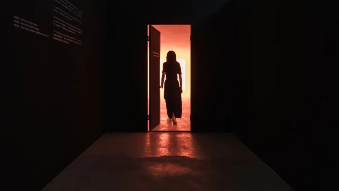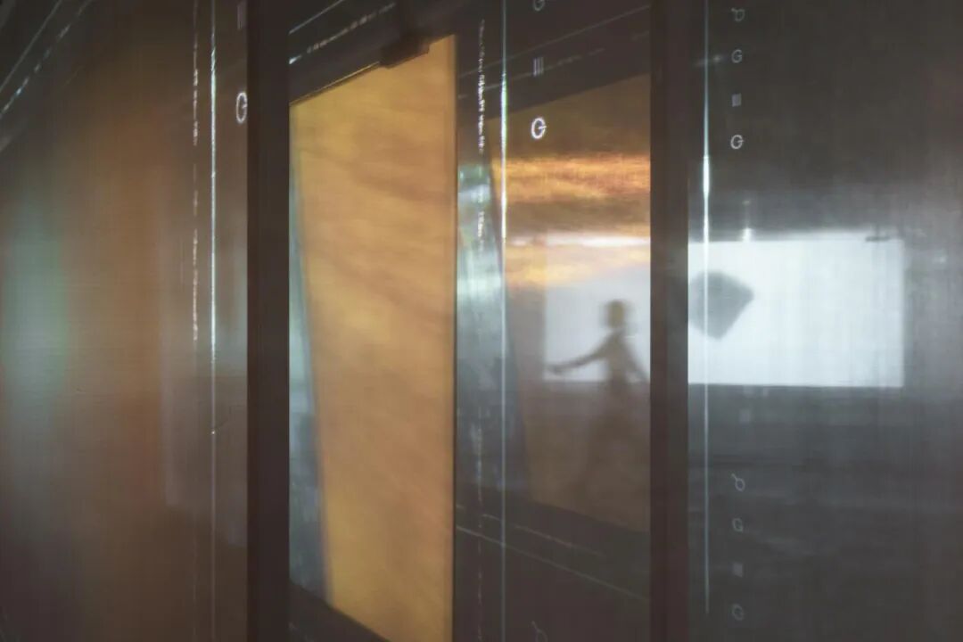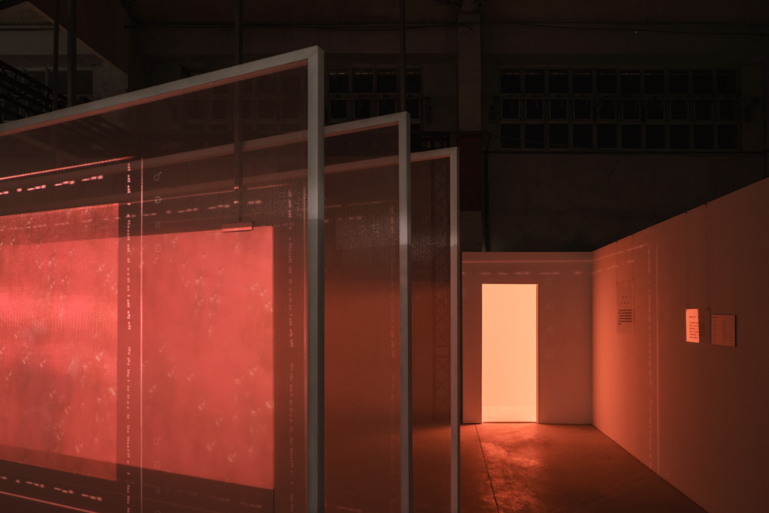 元宇宙是什么?有人说它是线上游戏,有人说它是虚拟实境的延伸,有人说它是下个世代的网际网路,人们对于虚拟的想望总在时代之中演进。此区有两座以纱作为载体的装置,第一座播放1962 至今,各种探究虚拟世界的经典影集、电影、发表会的影像片段。身处在层层的影像之中,就像我们对于元宇宙的感受——介于现实跟超现实之间、可及与不可及之间。