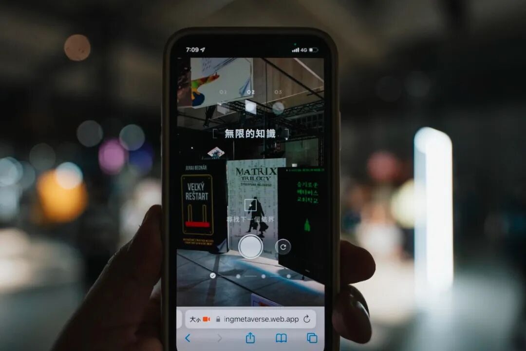 除了视线可及的实体展示,此区也对应主题场景,设有4 个AR 体验。在空间中找到特殊材质的海报,再用手机扫描,就能用Web AR 看见叠加在空间中的奇异世界。