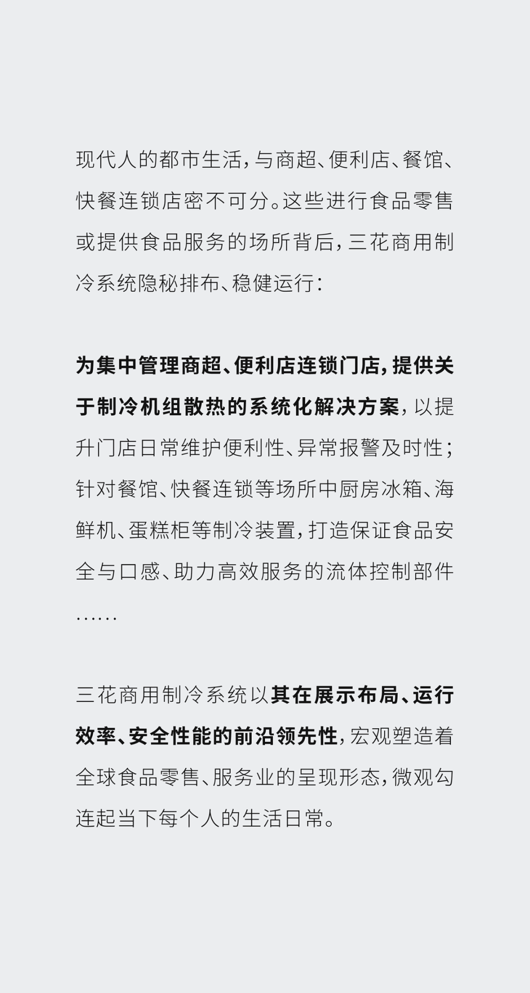 以“三花制冷八大系统解决方案”的定制化演绎为展陈重点,三花商用制冷的多元细分产品应用领域,被立体复原成具有差异性的“微场景”,结合可视、可触的产品实体与互动体验,让观众在多维度感官体验中,领会三花产品设计与技术研发的创新探索对宏观产业与微观日常、对周遭生态与未来文明的深远影响。