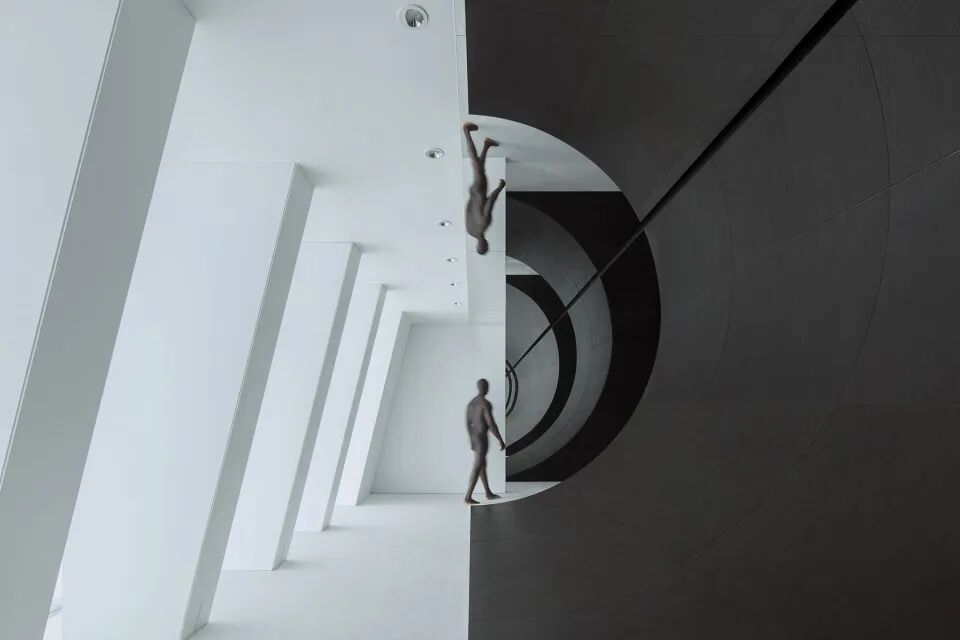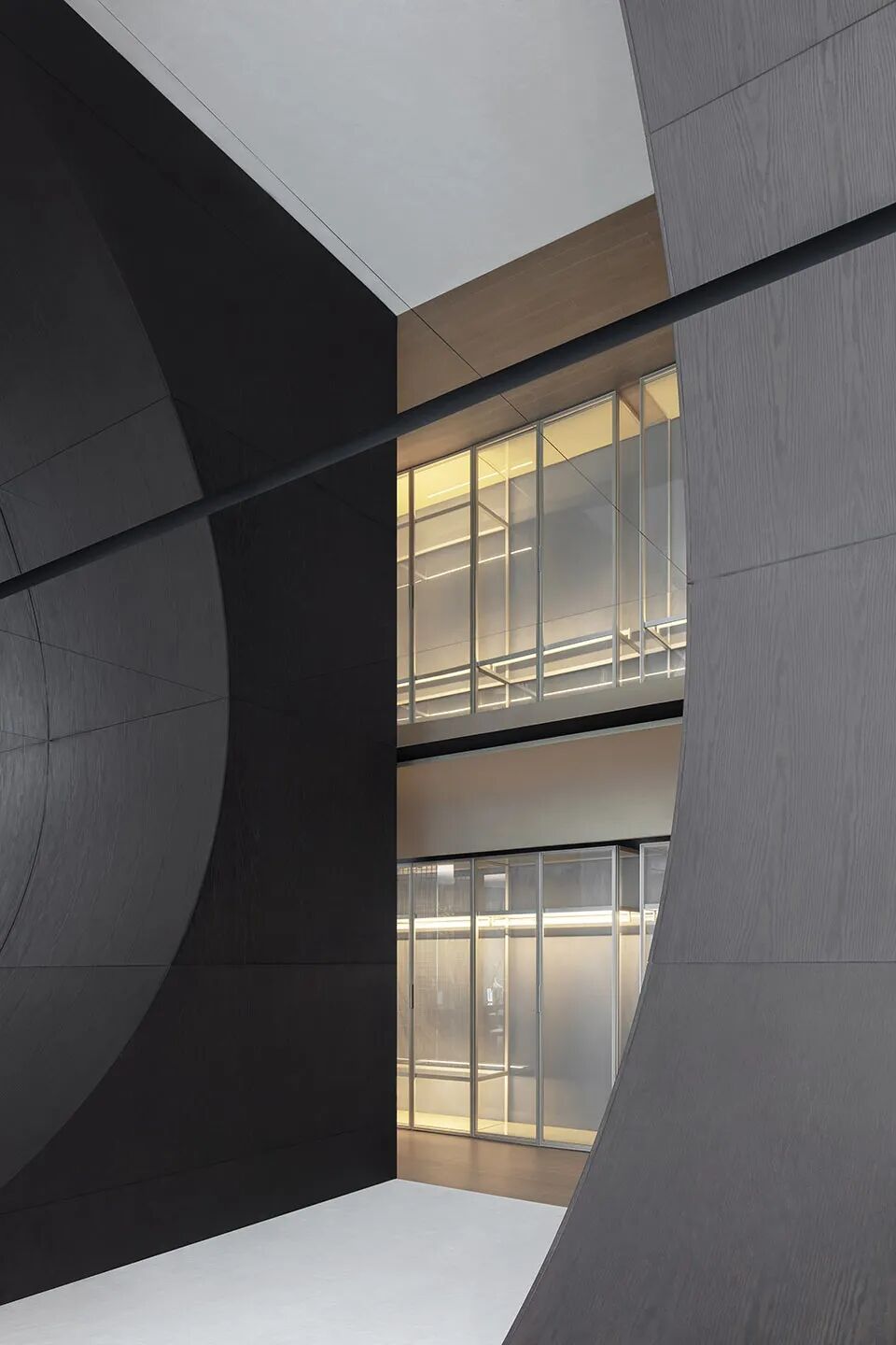 空间本身会形成宇宙的律动,保持着一种精神秩序,保持着一种黝黑所具有的无形的旷静和阴翳 。空间的秩序会形成安全感,我们在平和中静观,空间弥散的是自我存在的回声。是自我在抗拒现实的引力,我们希望达成变化的永恒性,并且保持静谧和纯粹。空间内向,以恍白的模糊隔离城市烟火的单一,还原被快节奏吞噬的本能想象。