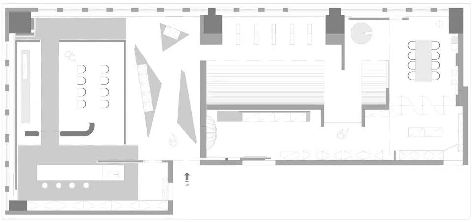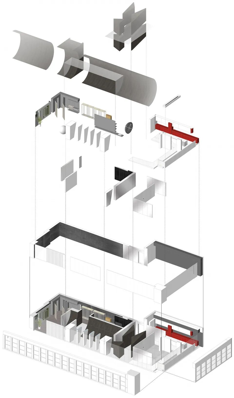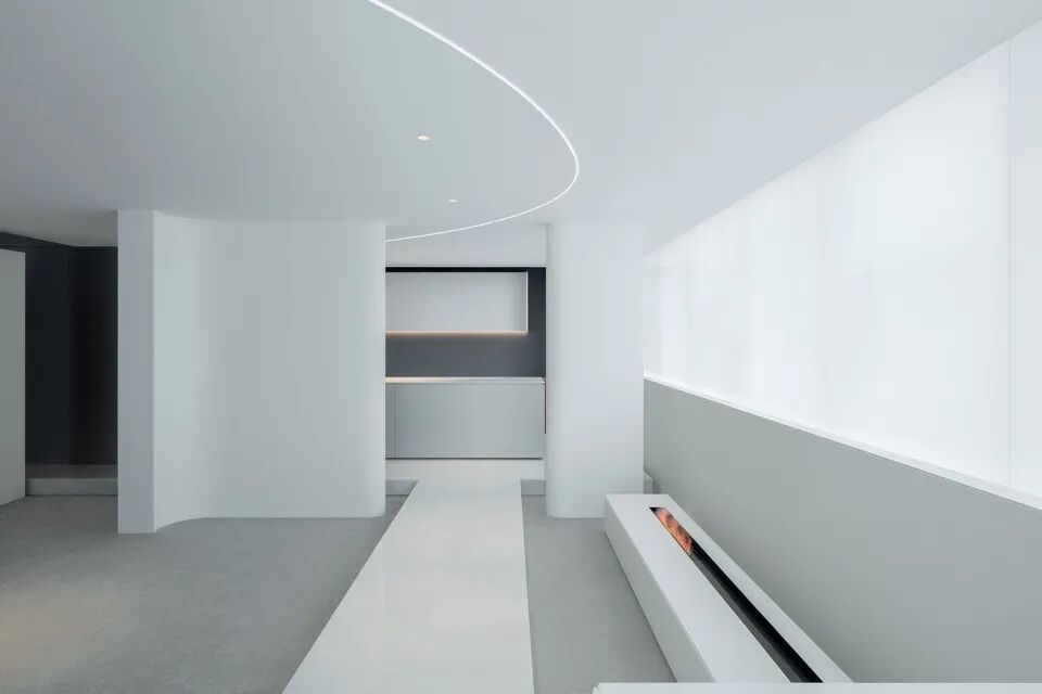 项目位于写字楼内,首先需要打破层高的束缚,以空间内壳的挤压再爆炸,以轴线的无限延展,去塑造浑厚的空间体量,以带来具有冲击力的视觉初体验,去消除写字楼局促的内部建筑,以及它内收的属性状态。改变传统全屋展厅的出样方式,以空间内部的建筑塑造去凸显企业的专业能力,以重塑私宅空间的形态定义,去表达对未来的敬畏、想象,对城市和山野渴望的自我辩论。我们假设一种未来私宅的形态构想,探讨一种变化的可能,关于空间属性的重叠,关于空间机能顺应时代的进阶,关于我们坐、卧、读、行等各种姿态在空间里的收纳。去进行没有界限的安置、生长,构造一种不完整的往复,形成独立的裂变,去完成自我的陪伴。