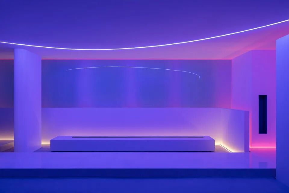 以光的变化去感受空间情绪的瞬变,空间包容的放肆的张牙舞爪,是等待回归的宣泄后的平静。我们可以去幻想无尽白昼的流星,幻想宇宙黑夜崭新的明亮,幻想不同天色情绪的丰富变化,关于炙热冷冽、张扬克制、迷幻和真实。