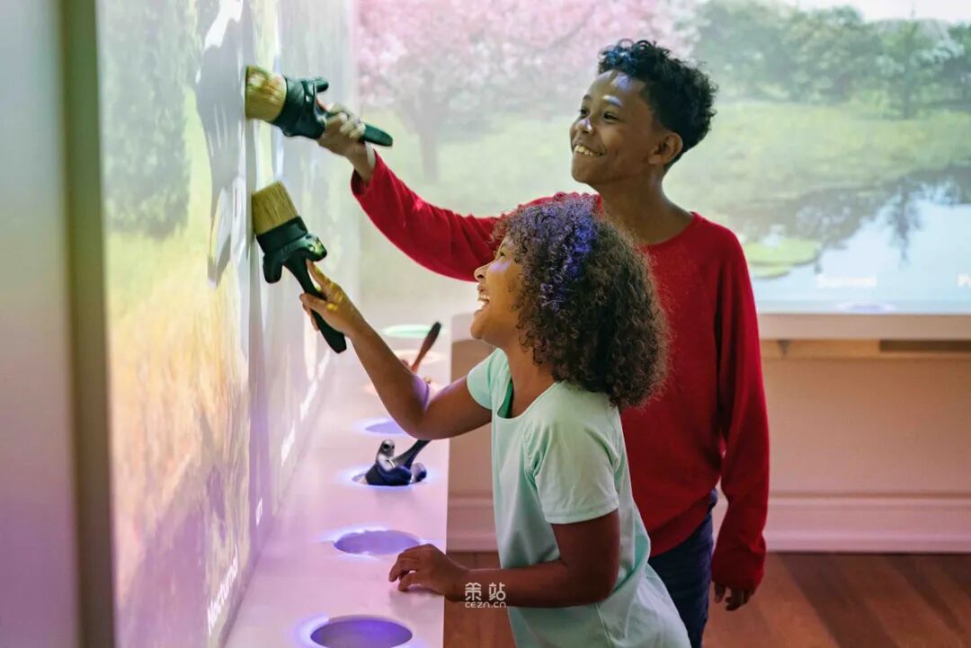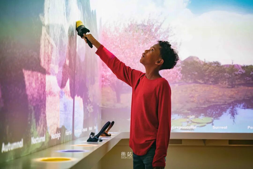 在单词世界画廊中,参观者使用“智能”画笔并选择一个描述性单词来“绘画”。当他们沿着墙壁移动画笔时,景观就会随着图像、动作和声音效果而变得栩栩如生,反映了特定单词的含义。当参观者用新的文字作画时,场景不断演变。