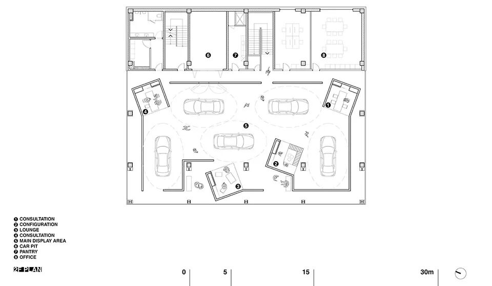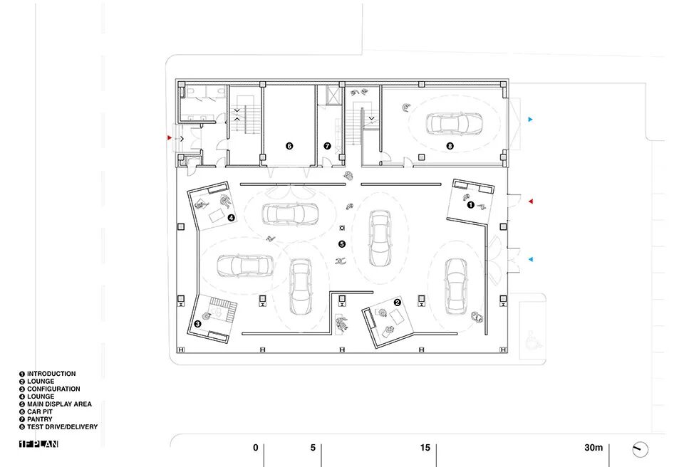 如今,汽车销售中心已经迈出了传统营销的局限,成为了一个更为多元化的购车渠道。顾客无需亲临实体店铺,就可以通过多种渠道进行汽车选购。据调查显示,高达90%的顾客在实际到店之前就已经对心仪的车型有所了解。随着销售压力的不断增加和消费者习惯的变化,如今的汽车零售商店开始更加注重视觉化的营销手段。展厅设计便是对这种趋势的回应:通过交错的橱窗展示,呈现出琳琅满目的品牌和车型,吸引顾客的眼球。