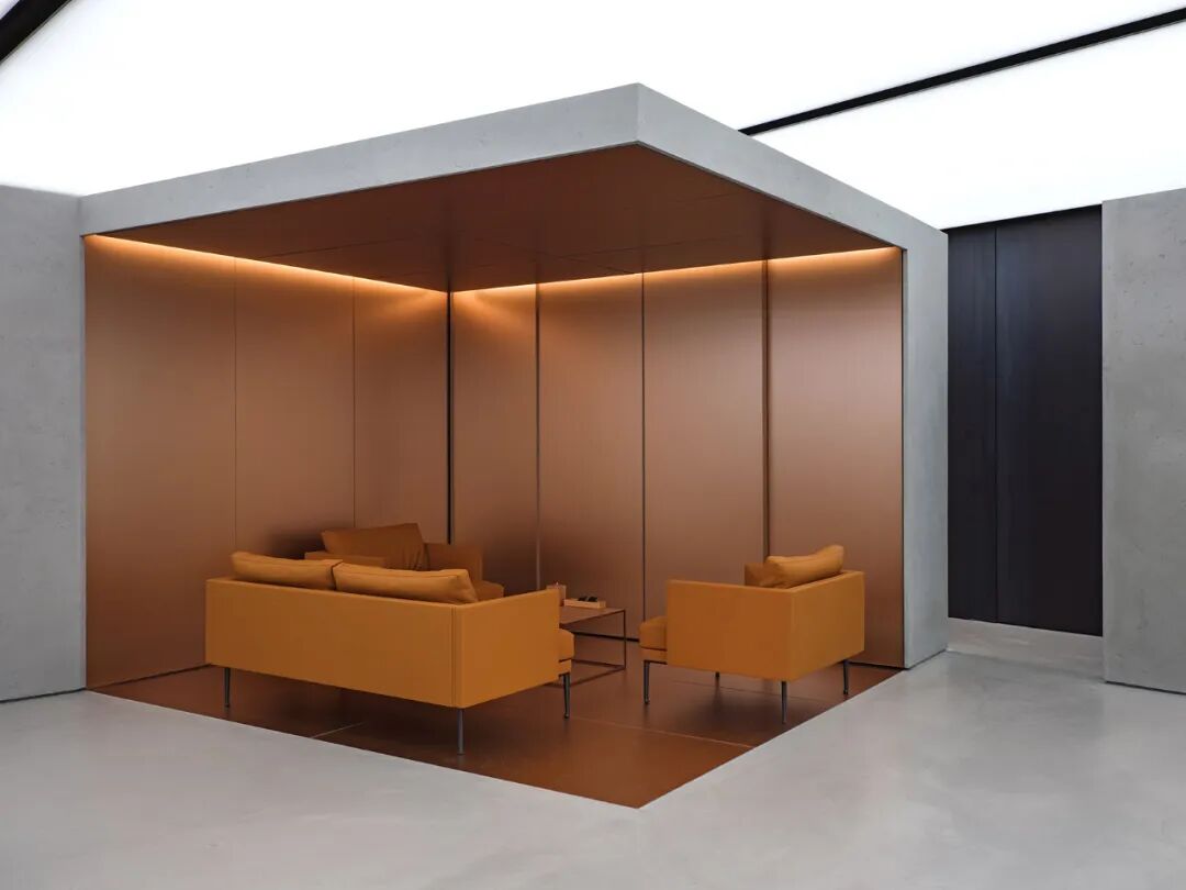一般汽车销售中心通常采用巨大的玻璃窗,让路过的行人可以透过窗户一览室内情况。而捷恩斯的空间设计却与众不同,通过柔和的色调和材料,引导访客在其中探索发现奇妙之处。为了降低其作为销售中心的视觉冲击,该展厅的销售活动被安排在一系列独立的小空间内进行。这些小空间陈列着与周围色调和材料相协调的家具,使整个空间呈现出统一的感觉。