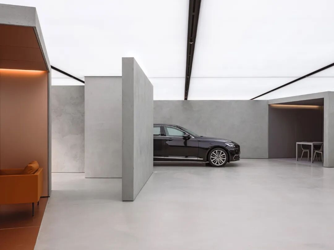 这次由AMO设计的高端汽车品牌捷恩斯的商店,不仅是一次空间设计,更是对汽车零售环境与销售效果的关系进行了深入探讨,并探索了未来可能的发展方向。Genesis Space Identity的推出再次突显了汽车销售行业的创新力。与传统的销售氛围或陈列方式不同,AMO在此次设计中巧妙地融入了捷恩斯的品牌理念。江南销售中心紧随AMO对建筑与品牌营销关系的研究,打破了传统汽车展示空间的局限。为了凸显汽车设计与工艺,展示的车型被摆放在以灰色混凝土和明亮天花板打造的相对中性的空间中。