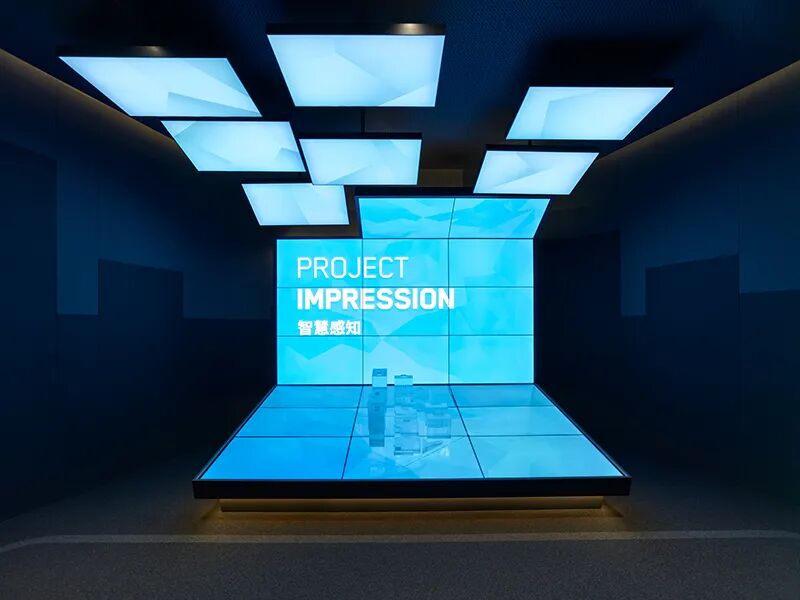 每个体块内部则承载了一个独立的展示空间,让每个展区的体验感以及声光效果更加独立,并且互不干扰。整个展示中心是一个全智能化的展示空间,讲解员配备了平板电脑中控系统,可根据参观动线及需求,自由切换屏幕中的播放画面,并且可以单独控制每个展厅的设备,灯光及场景的变化。