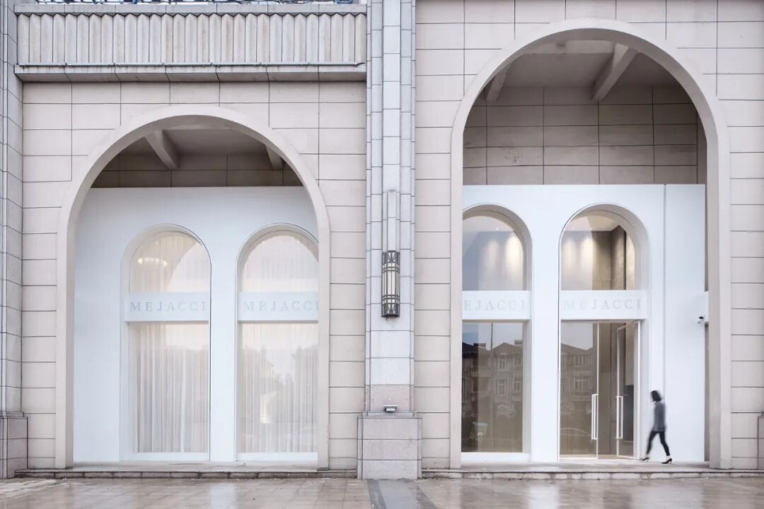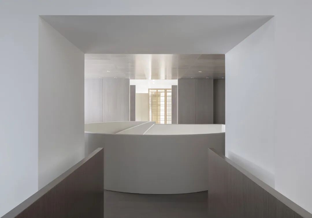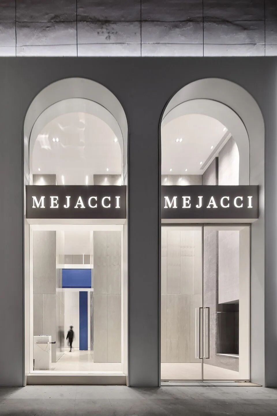 本拆开有木 ,它既是材料元素,也是空间气质的体现。数十年的积淀赋予其沉稳,决定了空间最关键的氛围和属性。我们特意创造了七米高的入口挑空,收窄了横向尺度,形成了狭窄通高的过道,塑造出一种朝上延伸的力量感。通过故意营造压迫和紧张的情绪,与梅亚奇达成了共识,期待让体验者对空间和品牌心生尊重。
