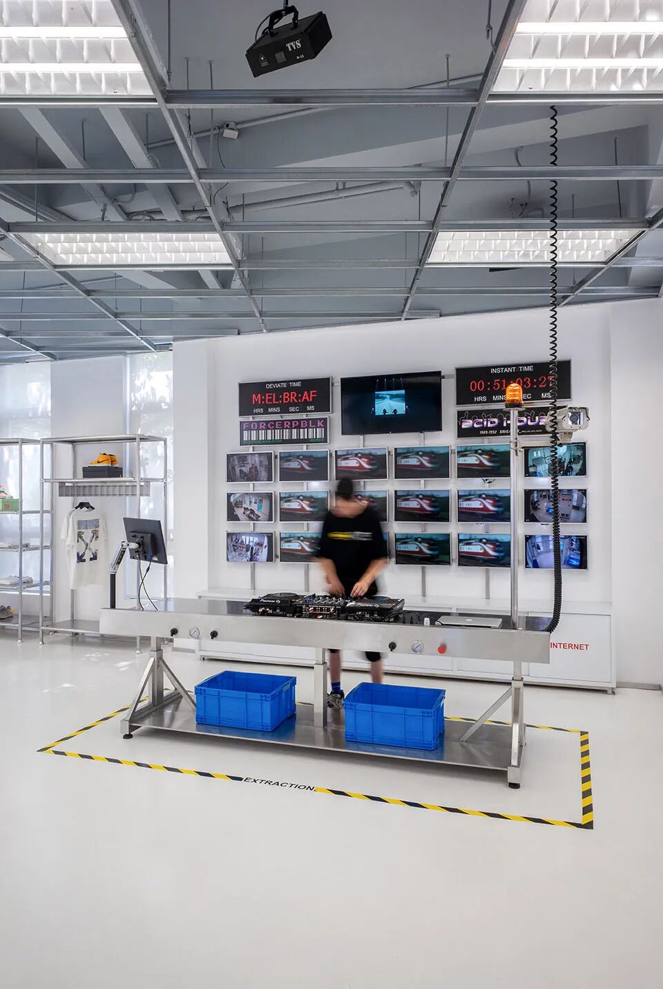 第三个艺术装置“分解台”,“分解”是实验室和街头潮流中都不可或缺的部分。无论是实验品的分解,还是街头设计中的解构,都是一种拆除外壳、重组再造的过程。不断散发的烟雾中,新的灵感和创意正持续诞生。