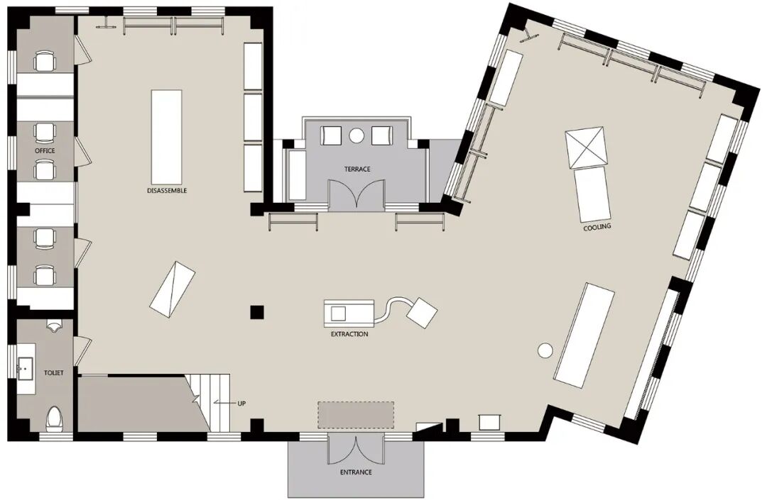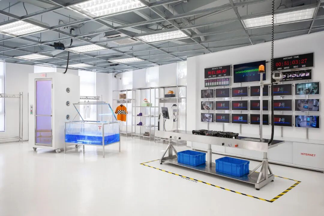 THE MIX LAND作为一家潮流品牌集合店,囊括了当下最热门的街头品牌,如AirJordan、A-COLD-WALL、AMIRI、Champion、FORCERPBLK、Heron Preston、OFF-WHITE、Palm Angels、Supreme、UNDERCOVER、YEEZY等。它不仅仅是一个购物场所,更是一个为热爱街头文化的潮流玩家提供相聚和交流的地方。因此,现象设计团队在设计店铺空间时,以同样新潮的“实验室”为概念,试图用回归街头的手法表达细节,使这个空间和街头文化一样始终处于动态变化之中。