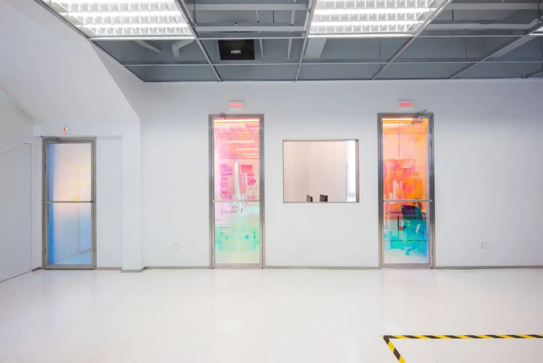 我们对实验室的印象伴随着各种化学物质碰撞产生的奇异色彩,而荧光也是街头文化中最常见的设计元素之一。现象设计团队将其穿插在THE MIX LAND空间中,以高饱和度的蓝色装置、随光影变幻的炫彩门窗以及电子荧幕的动态数字等方式呈现。