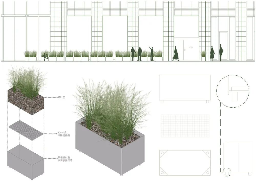 ▽建筑外部以定制花坛作软隔断© Wen Studio