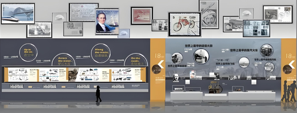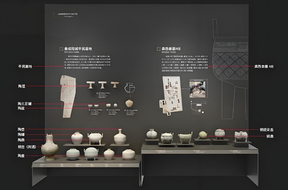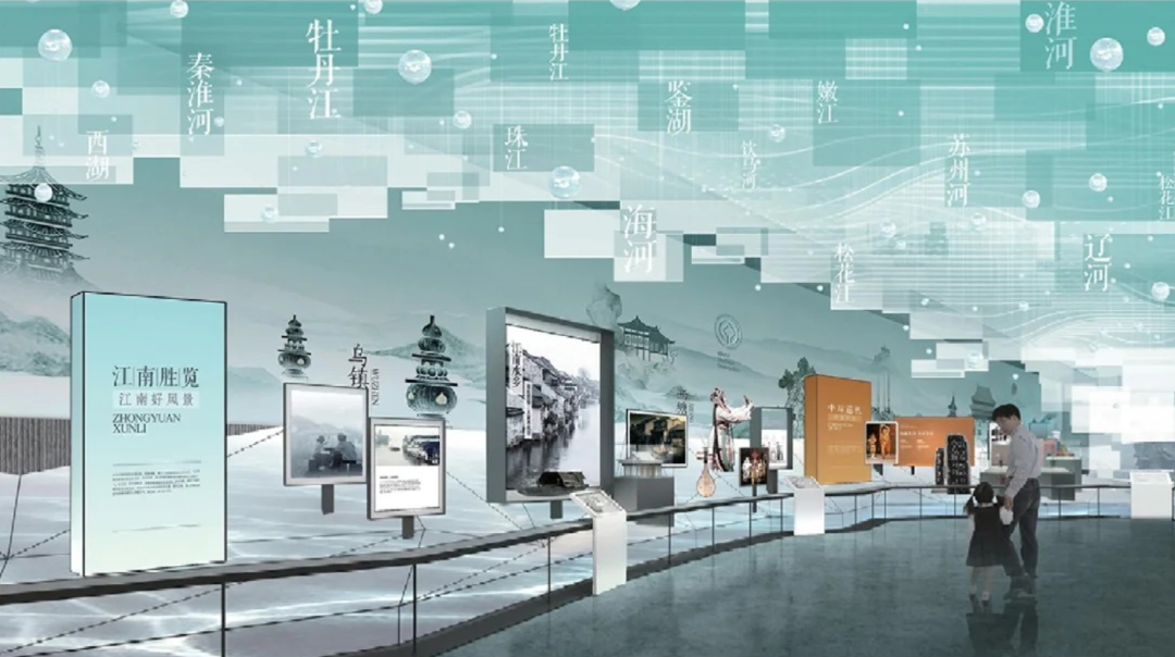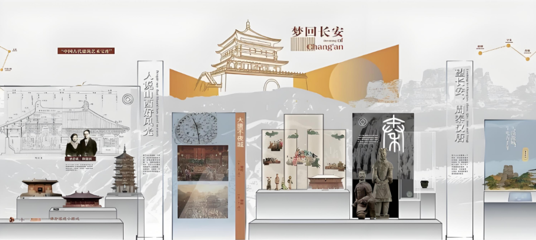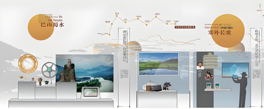 诗词的视觉化:西安“岁月长河”展厅将历史轴线转化为镂空卷轴立面,嵌地模型与投影演绎朝代更迭,观众踏过嵌地铭文,如行走于“秦时明月汉时关”的史诗中。