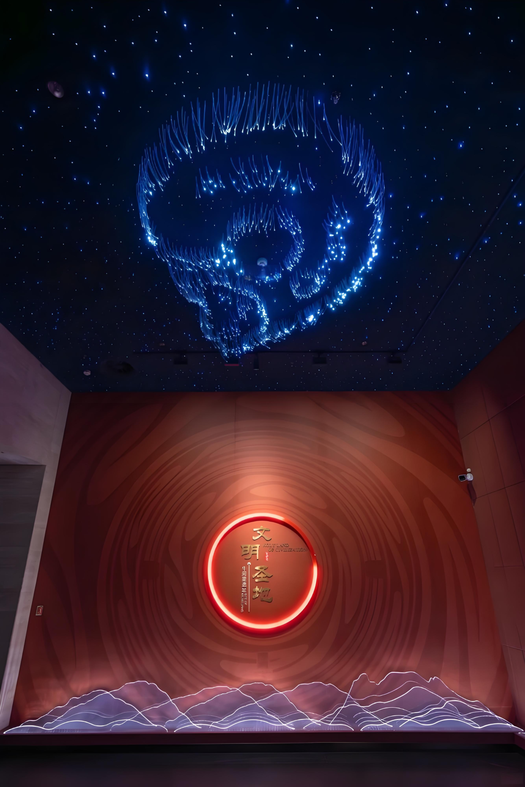 洛阳二里头夏都遗址博物馆以夏代礼器"青铜爵"为造型母题,V形钢结构精巧支撑128米跨度的悬浮屋面。中庭地面镶嵌的铜质夏代星图装置,使冬至日正午阳光精确投射于主展柜的绿松石龙形器,完成跨越三千八百年的天文对话。成都金沙遗址博物馆的"太阳神鸟穹顶"采用先进的双层PTFE膜结构,内层激光雕刻十二道芒纹,通过精密计算的光影变化在遗址沙盘上重现古蜀国太阳崇拜的时空轨迹。