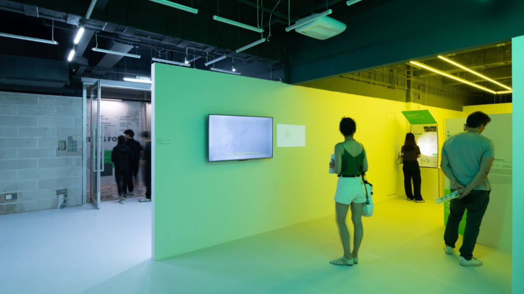 The opening exhibition explores the circular regeneration of cities, and the reusable modules perfectly fit the theme. The flexibility of space and components provides a lot of convenience for exhibition layout, while module groups themselves also form expressive elements, such as vinyl record player booths and viewing benches, which constitute the visual experience of the exhibition.