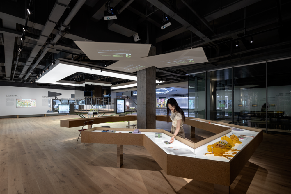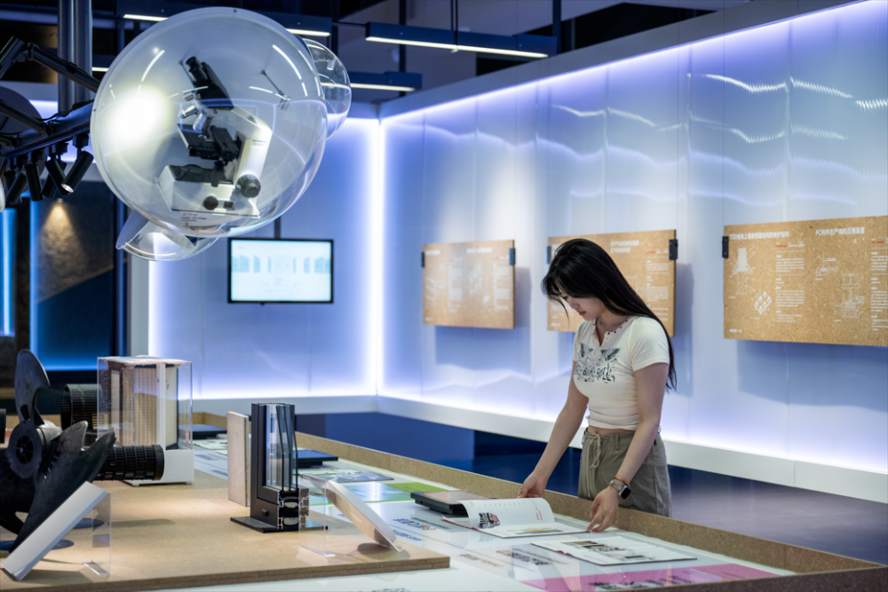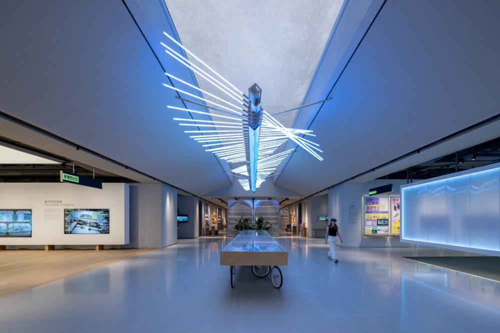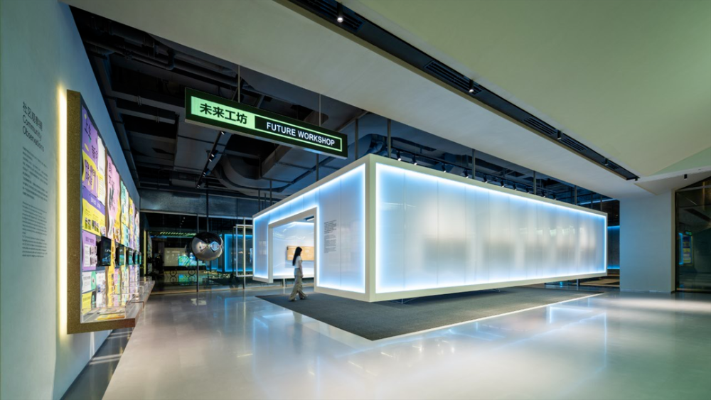 The overall exhibition area of Xinxin Institute includes two main exhibition areas, the "New Ideal Community" on the north side and the "Future Workshop" on the south side, as well as a multifunctional space in the atrium.