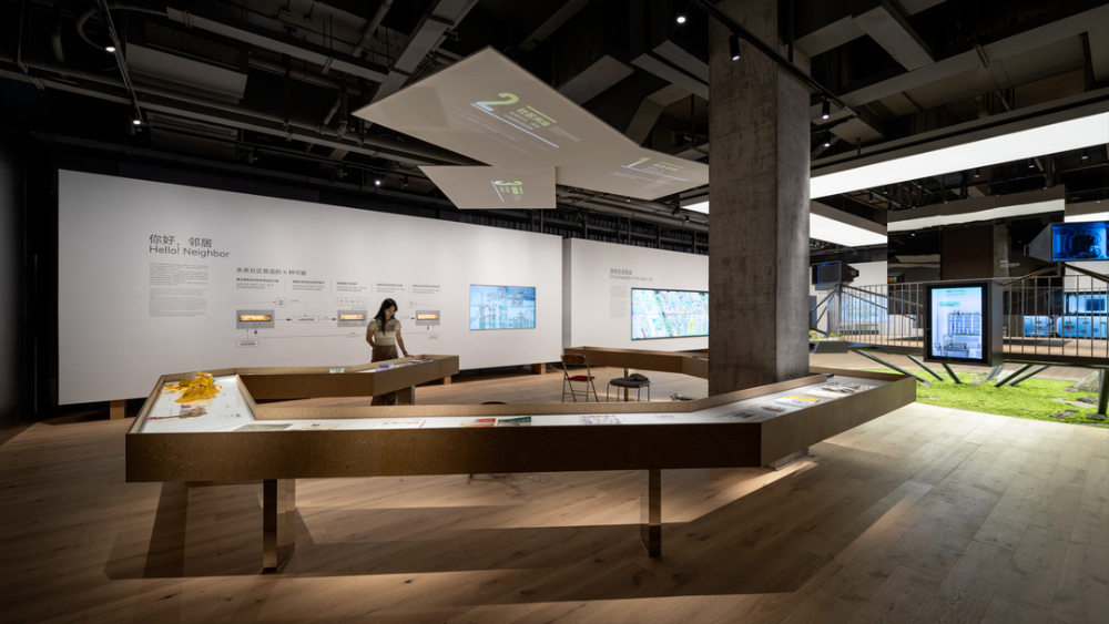 “未来的新新所展厅,对外呈现出一种十分开放的姿态,内部则像一个活跃多元的‘能量场’。空间中应该有无限的可能性,具有一套灵活的空间操作机制。它以讲述万科未来城市探索计划、理想之地社区为基本命题,同时,以开放的格局链接更广泛的资源,并有一套为之量身设计的引入和迭代机制。它聚焦未来社区、理想栖居的叙事主题,但不搞学术研究或科幻大片,反之以更亲人和贴近社区的视角,鼓励探索参与、链接新技术、注重场景体验。最终,我们无法再用‘展厅’来定义它,它将是一个新的社区叙事,一种新的‘空间物种’。”——这是直径叙事在概念设计时对新新所的首次勾勒想象。当项目完成后再回头审视这段话,也许并未百分之百达到最初设想,但我们仍然对此次的社区策展探索感到收获满满。