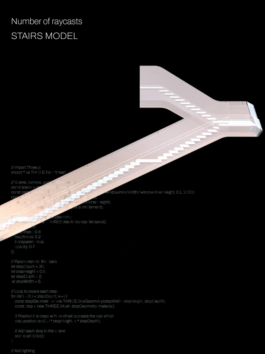 宛如通往天际的步梯,一直通往高层家居五金博物馆。该楼梯设施作为不同楼层之间的功能连接纽带,同时亦为中心雕塑所在,提升了空间的动态性和视觉吸引力。