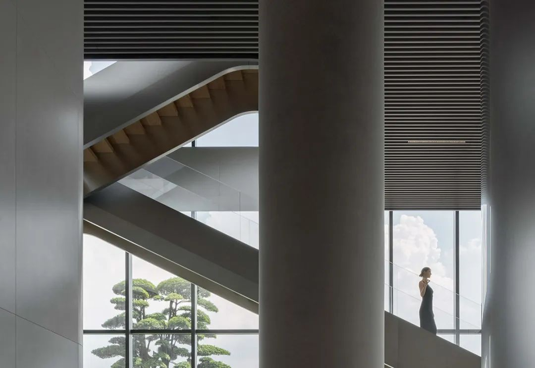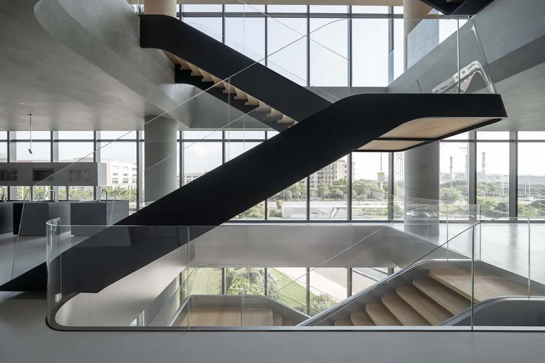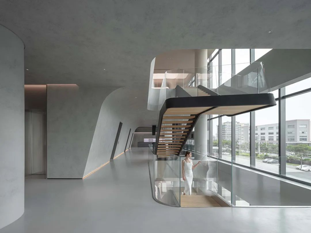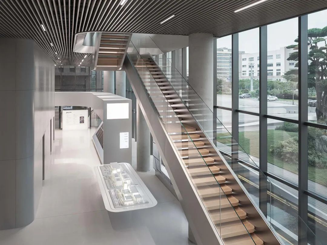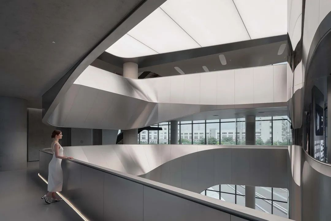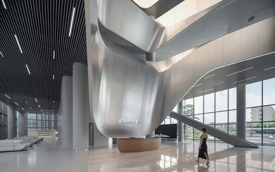 Tags:五金制造/展厅,佛山、总部、未来感、视觉艺术、中庭、悬挑式楼梯