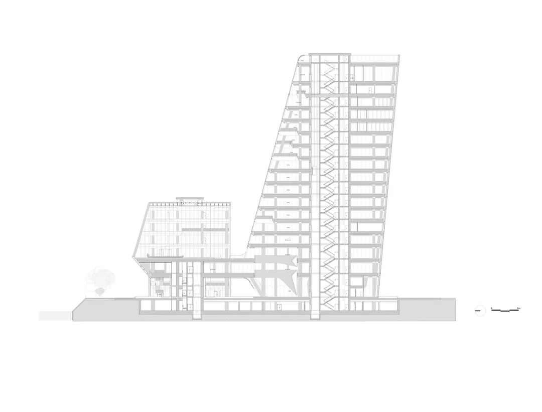 The tilted curtain wall first became a way to interfere with the regulation of reality, and naturally constructed an intuitive experience between ordinary and extraordinary.