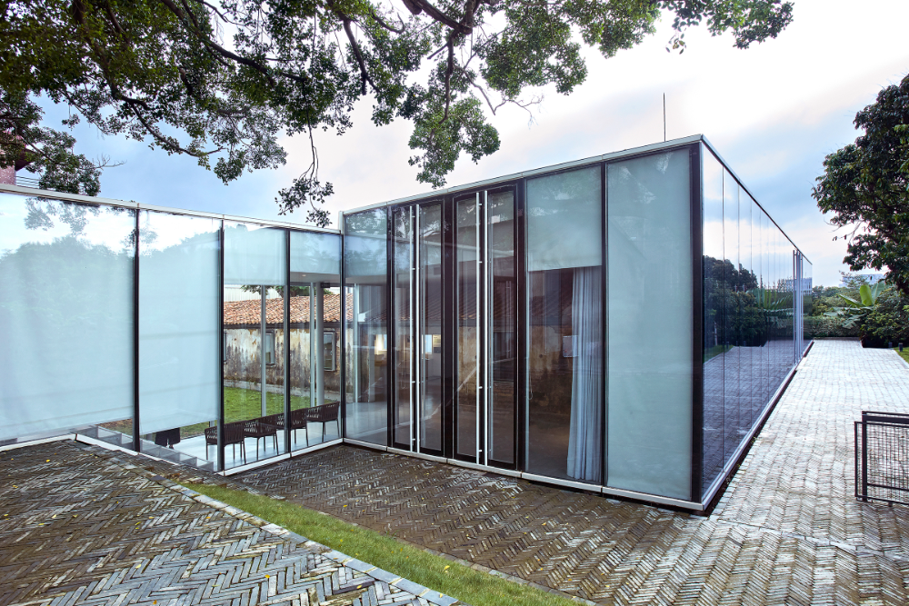 景观规划中,场地后方的大榕树被重点保留下来,成为景观的一部分。建筑中庭的水景作为新旧建筑之间的过渡以及户外景观成为庭院的视觉焦点,吸引过往参观人流。开幕式当天,这里也成为了艺术家艺术表演的场地。
