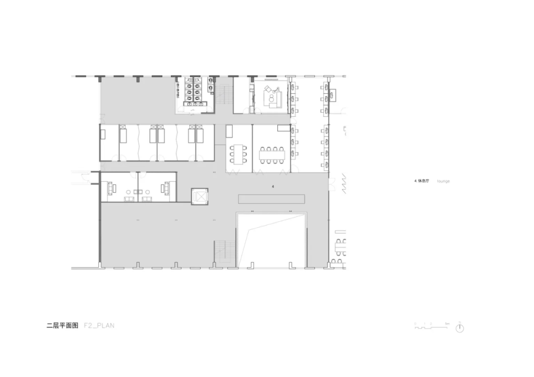 The factory building with a sense of history has been transformed into a modern office space for the enterprise. With the fusion of design, the red brick building is wrapped in white grilles, evoking a new perception of industrial forms and materials. In terms of the facade, the design team has removed part of the red brick wall and replaced it with a large area of glass to introduce more natural light into the interior. This approach not only responds to the conceptual element ‘light’ but also moves the main entrance to the east, creating a sense of detour in experience.