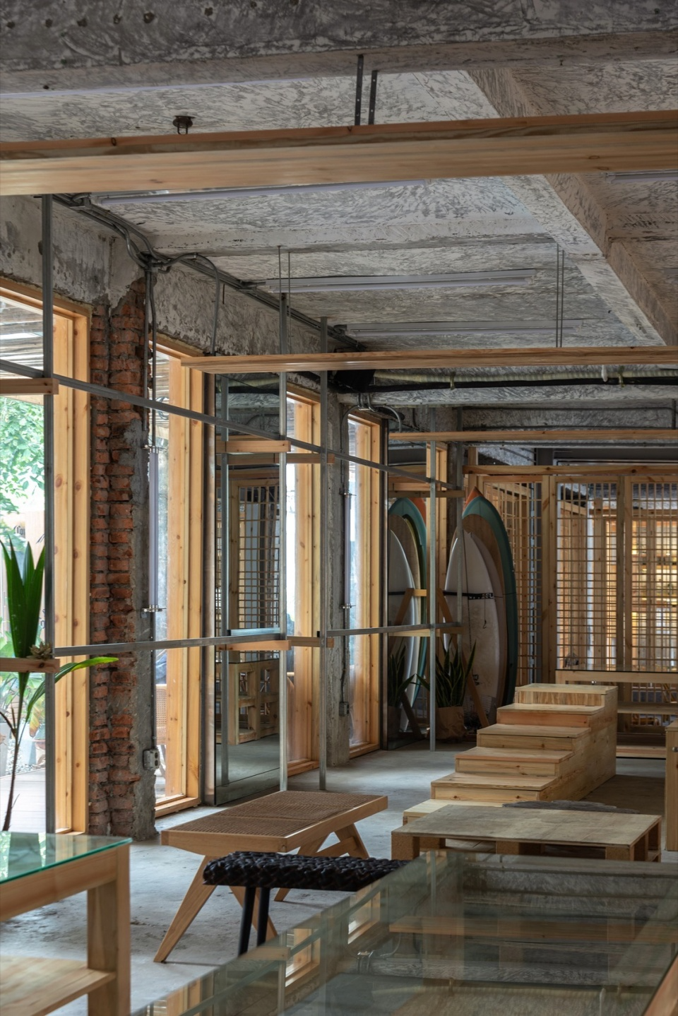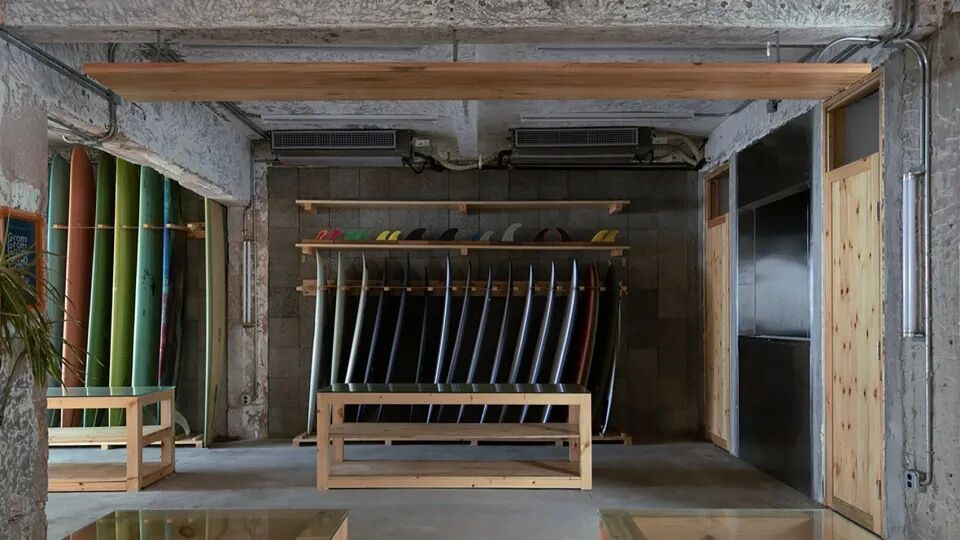 GROM's first store accompanied Riyue Bay through the entire epidemic period and became a part of the surfing culture foundation of Riyue Bay. After the end of the epidemic, due to the expiration of the lease, a new store needed to be relocated. The new store is located in a row of self built houses not far from the old store. After receiving the design commission, we began to understand and think about what kind of space the surfers needed.