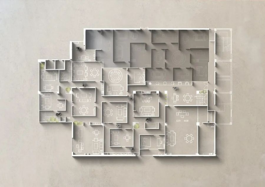 The courtyard is deep, with willows and smoke piled up, and curtains without weight. The design hopes to break the sense of confinement and oppression brought by this closed space through framing, window openings, and other means.
