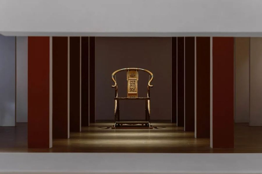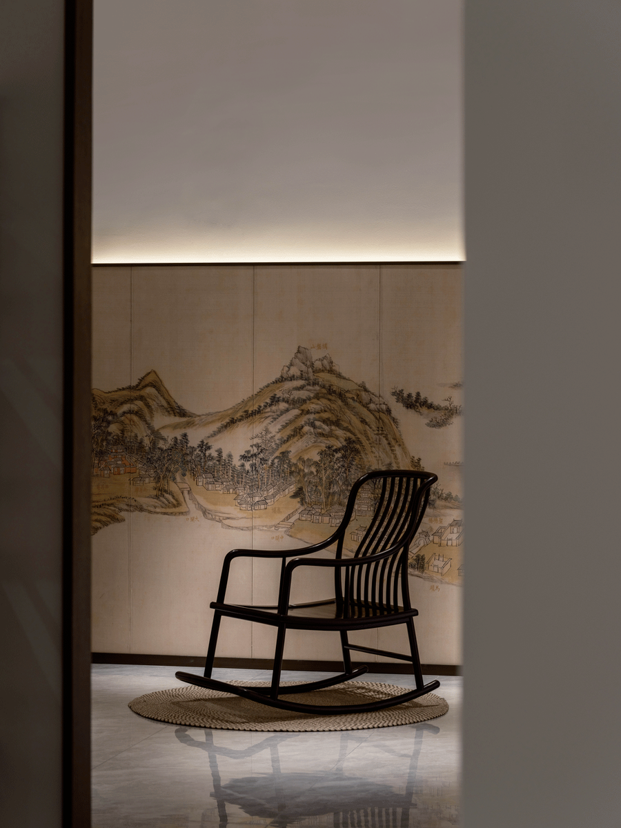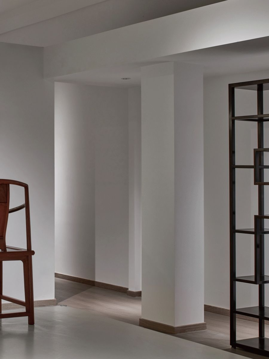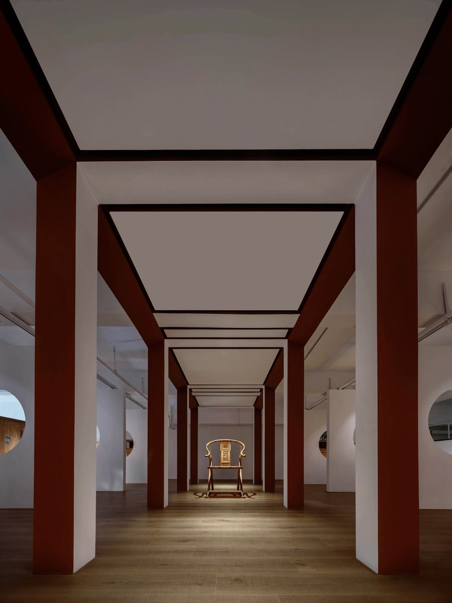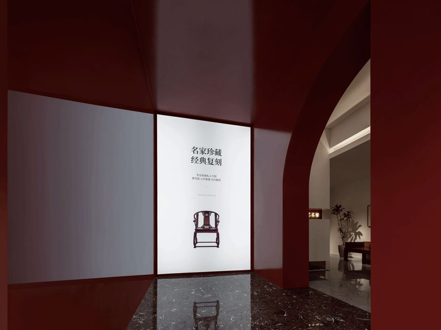 “线构”是设计师为展厅定下的第三个主题。红木家具采用榫卯斗合,在结构方面不用钉,不用胶,自成一体。每一件都像是一组精典的建筑组合。