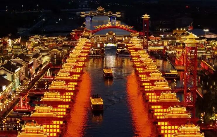 (图片:唐山市丰南区河头老街景区乘船游览丨来源:新华社)