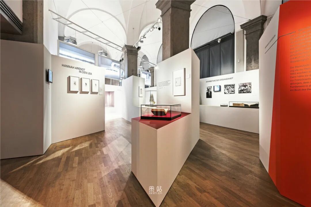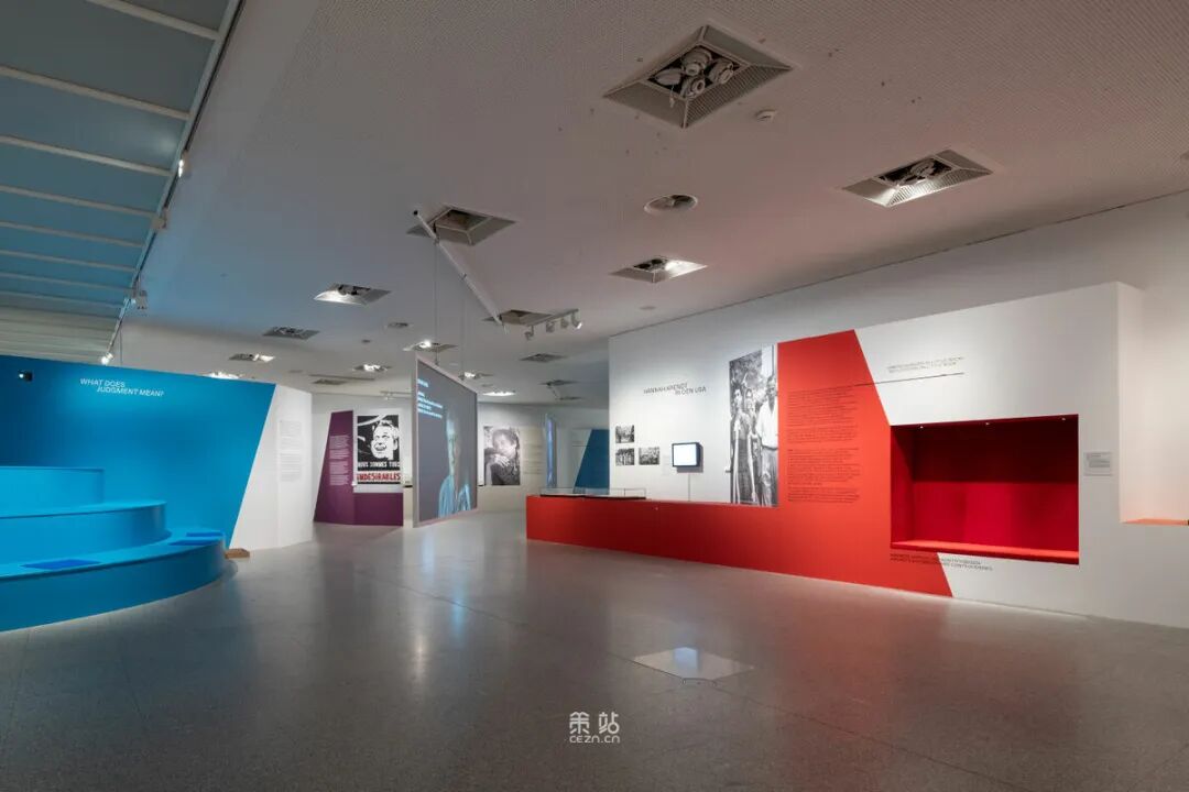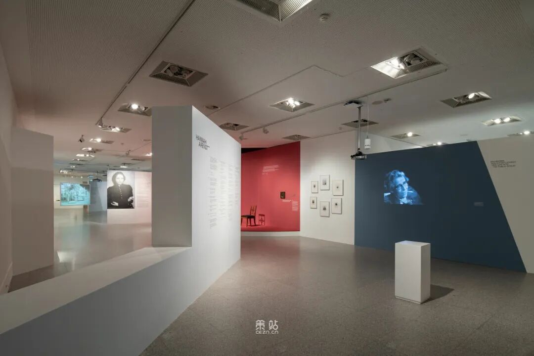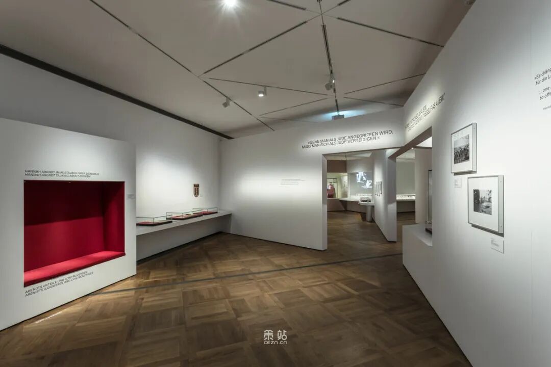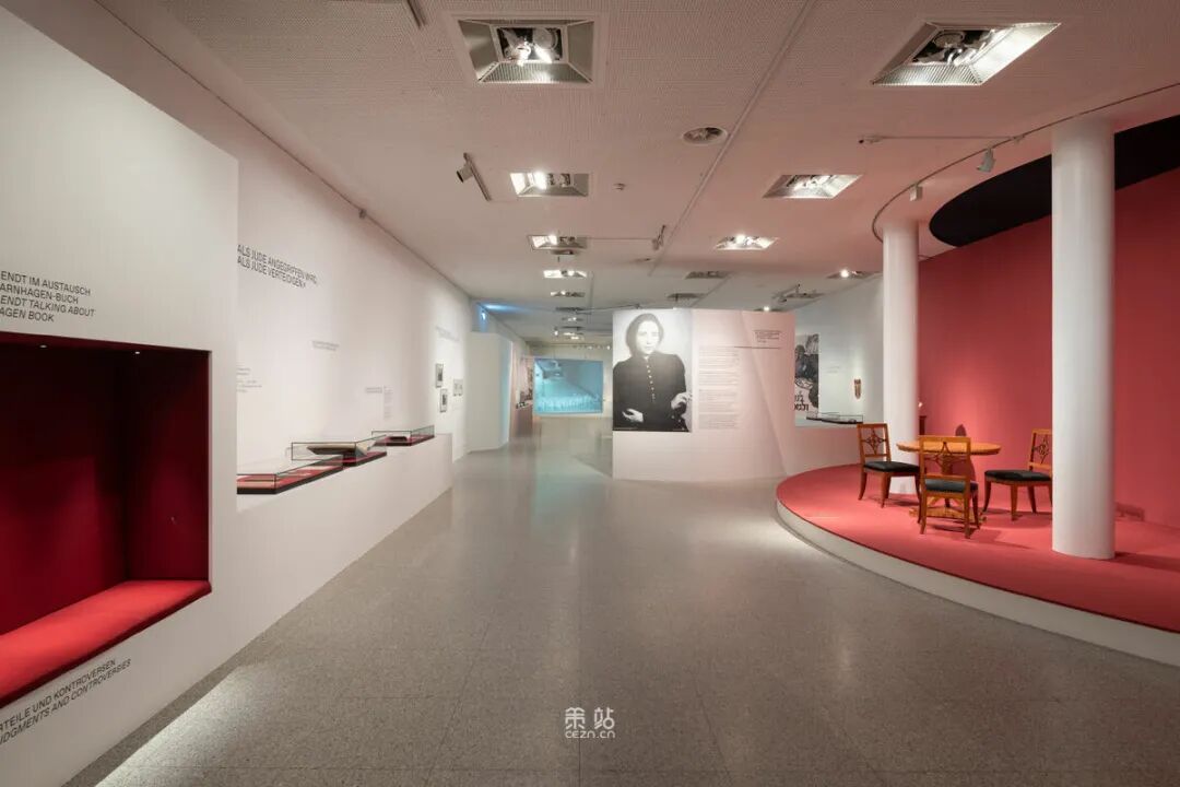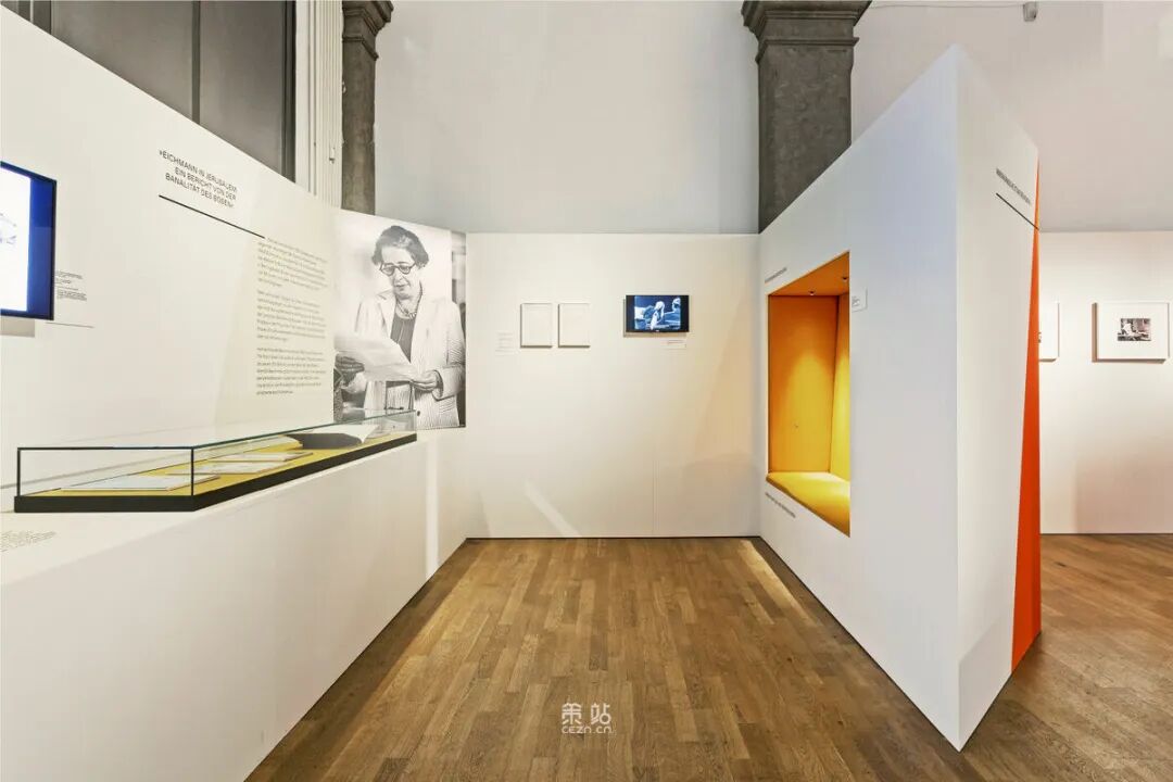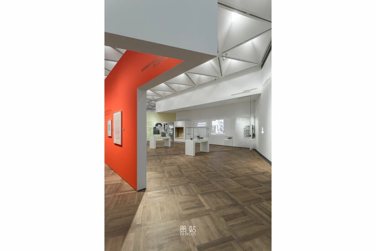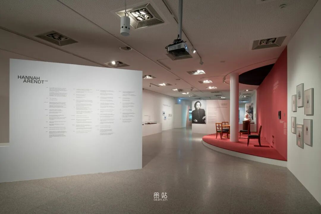 Chezweitz 在两层楼上建造了一个空间结构,沿着策展人明确提出的主题组织参观。其结果是一个建成的、可步行的、三维的网络,开辟了令人兴奋的空间、多样化的参考和视角。图形和媒体的巧妙运用使得展览设计能够为主题的严肃性提供空间,同时允许对汉娜·阿伦特这个人的非常个人化的看法。