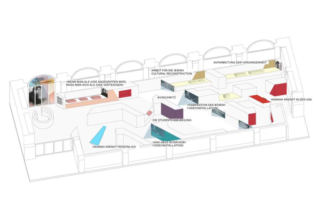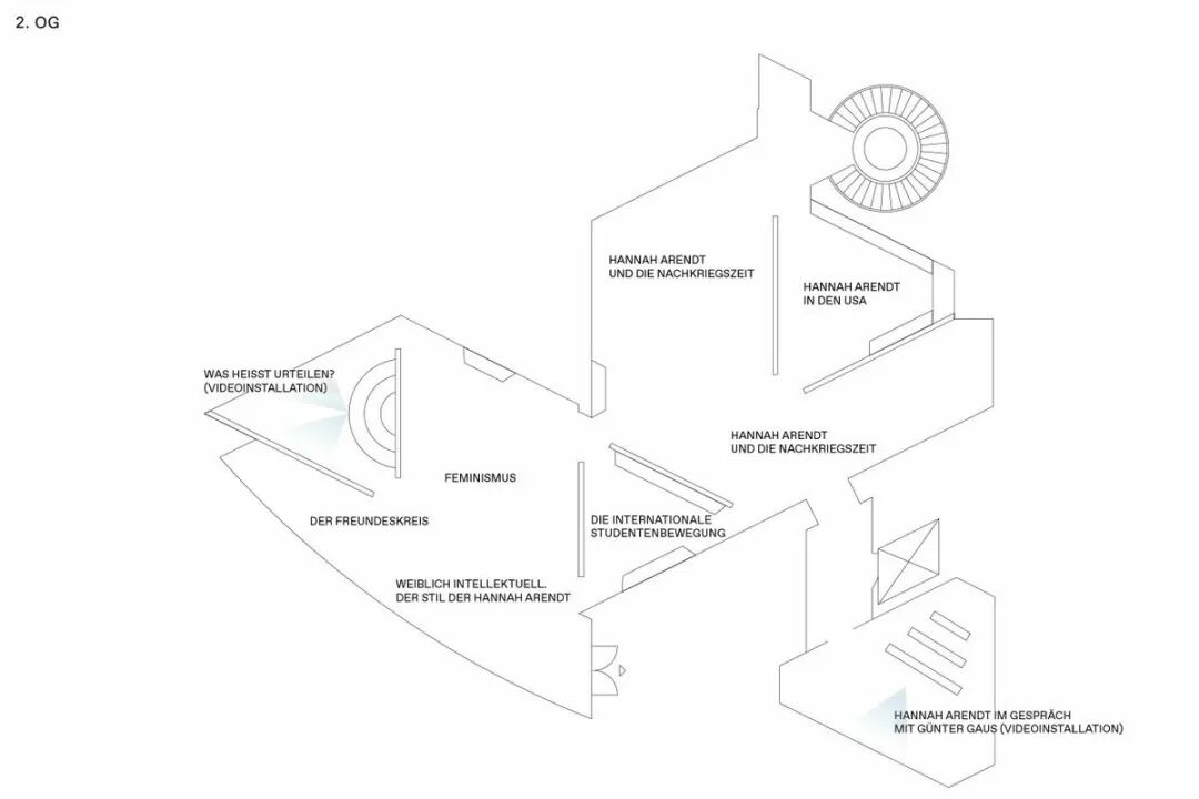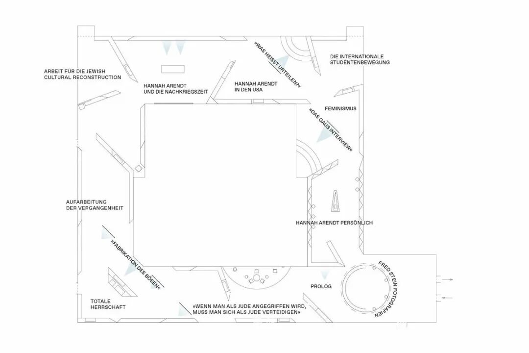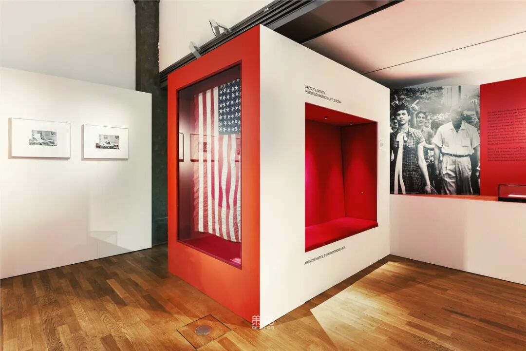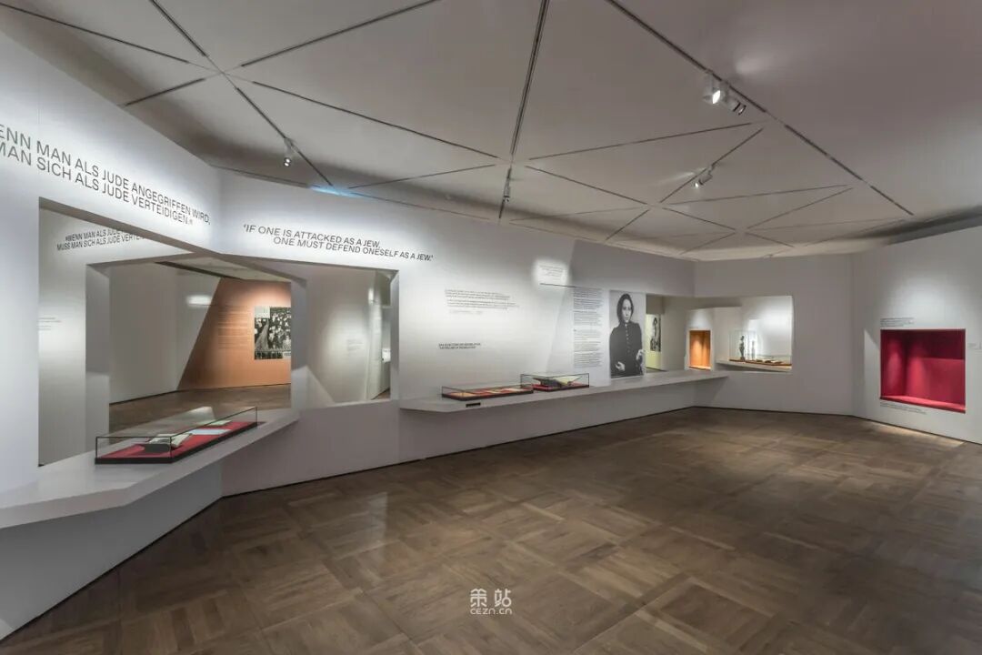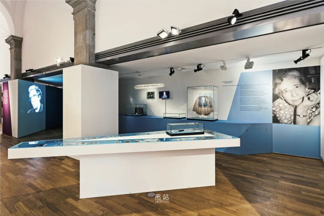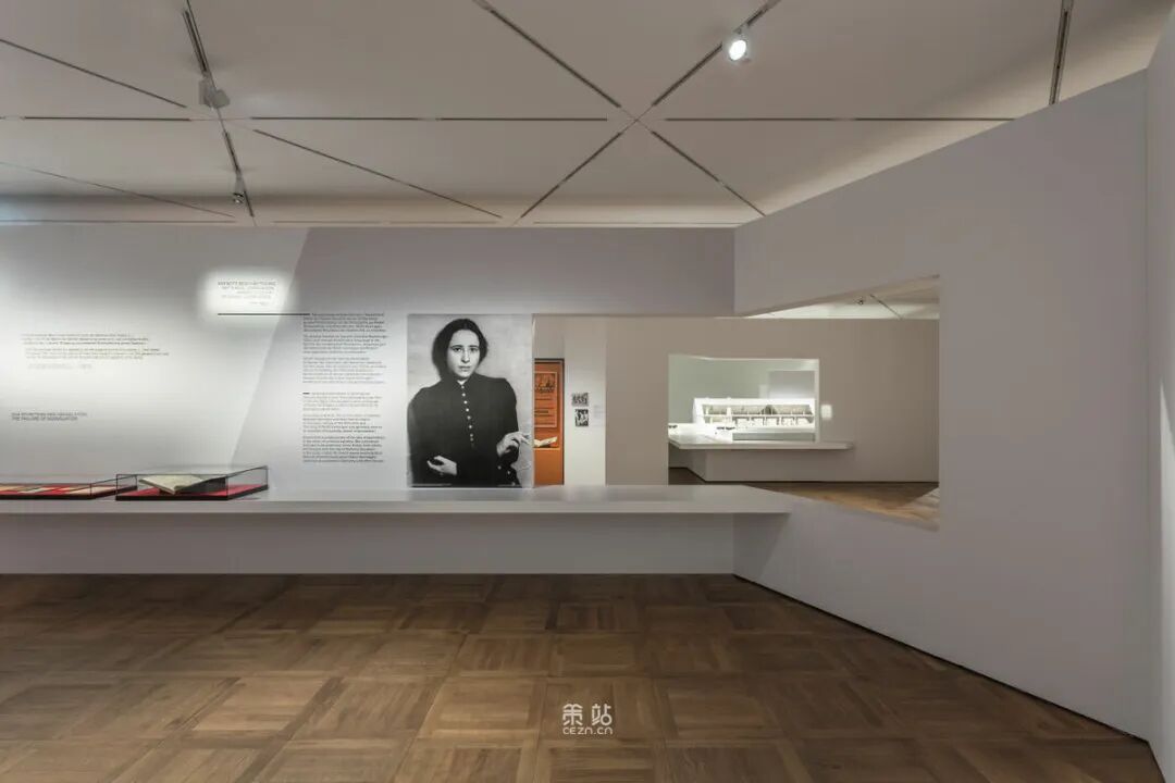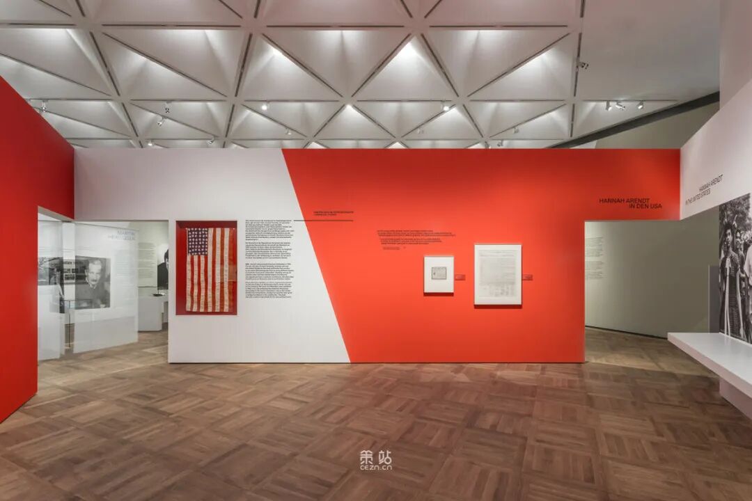 Chezweitz 在两层楼上建造了一个空间结构,沿着策展人明确提出的主题组织参观。其结果是一个建成的、可步行的、三维的网络,开辟了令人兴奋的空间、多样化的参考和视角。图形和媒体的巧妙运用使得展览设计能够为主题的严肃性提供空间,同时允许对汉娜·阿伦特这个人的非常个人化的看法。